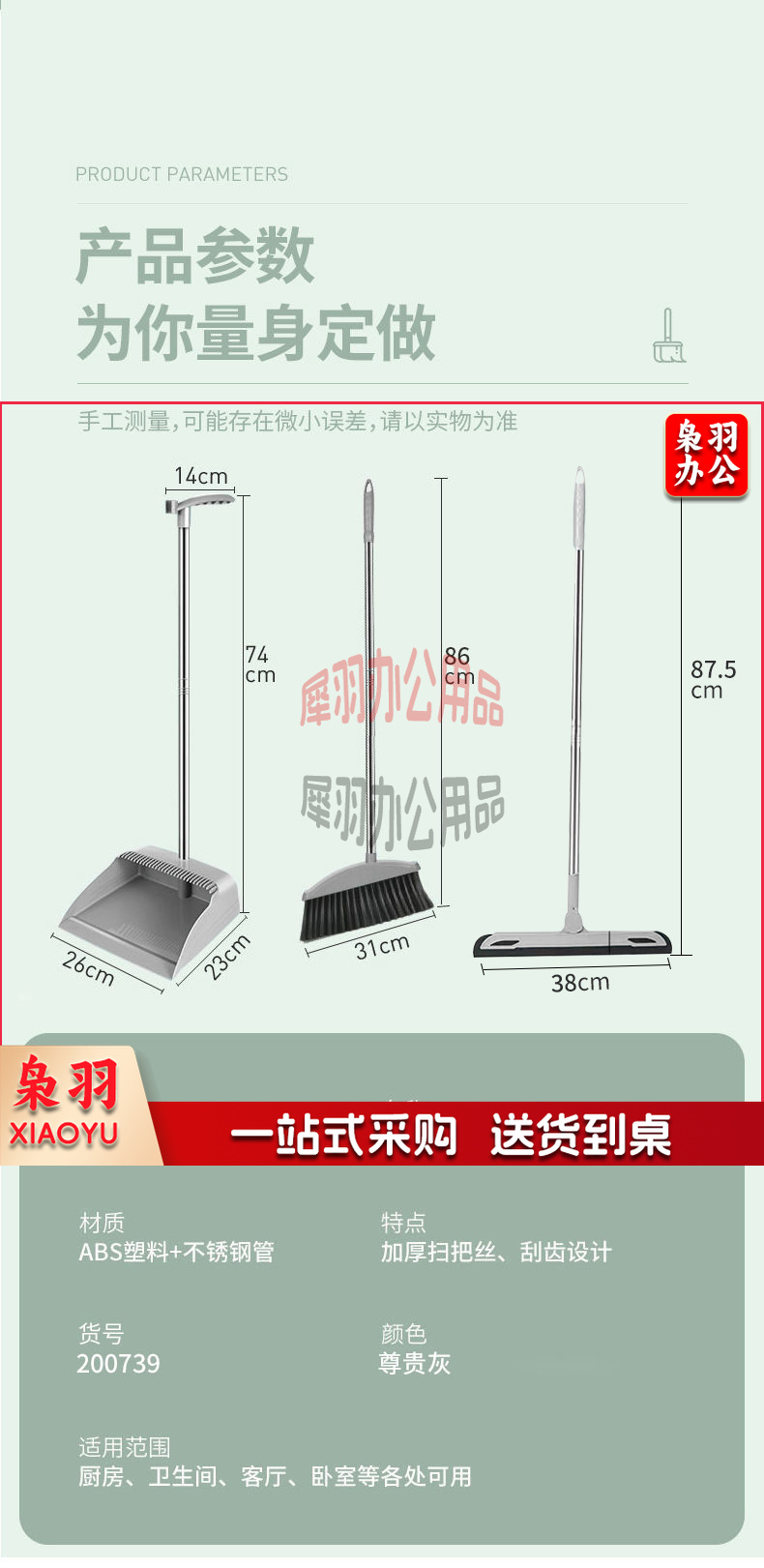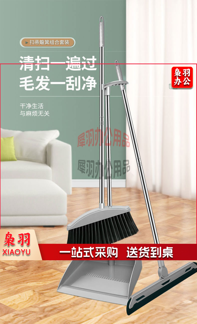 扫把套装+魔术扫把3件加长梳齿型扫地刮水扫帚簸箕组合灰200739