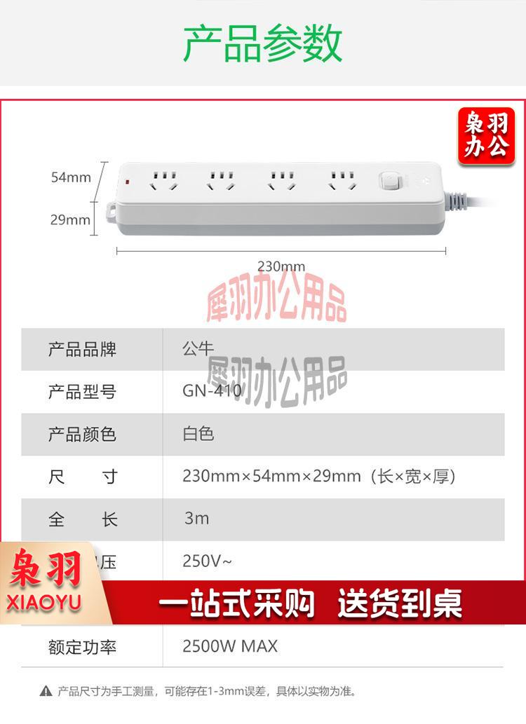 公牛(BULL) 新国标插座/插线板/插排/排插/接线板/拖线板 GN-410 4位总控全长3米