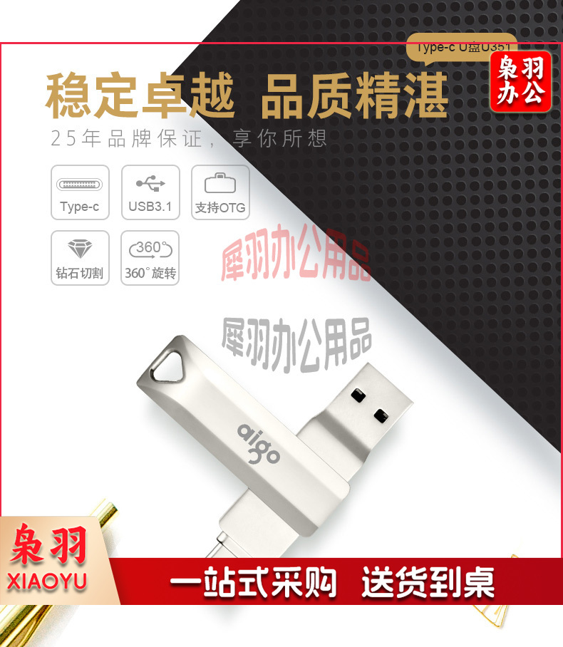 爱国者(aigo)128GB Type-C USB3.1 U盘 U351高速读写款 银色 双接口手机电脑用