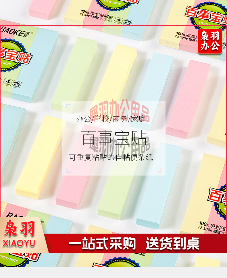 宝克(BAOKE) TZ2003百事贴 便利贴 彩色留言纸 便签标签纸 作业贴可重复自粘便条纸 学习办公用品文具 51×76mm 单包/4色