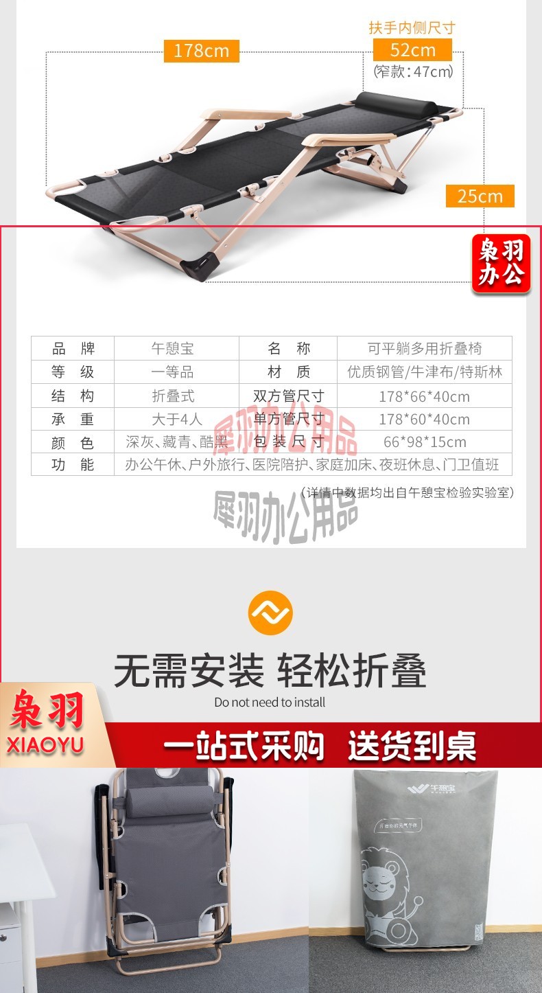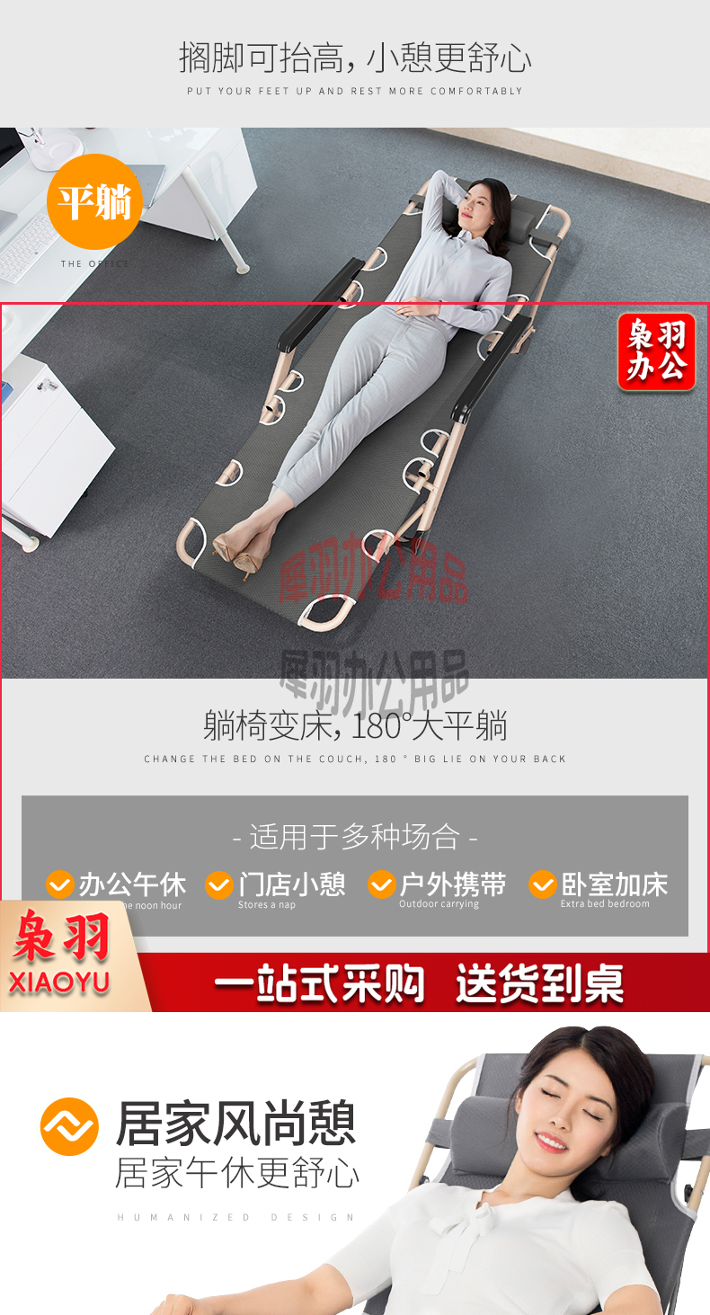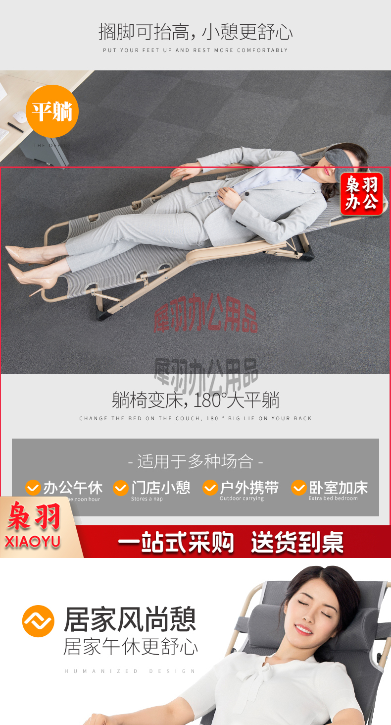 床躺-椅午休床折叠-椅午休办公室午睡床懒人椅沙-发-椅-椅陪护-床 柔感透气垫【可坐可躺】加粗方管