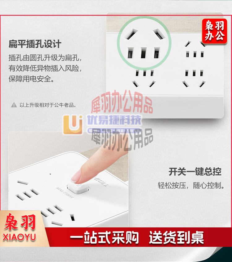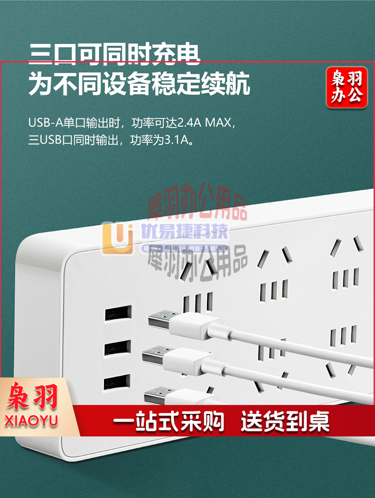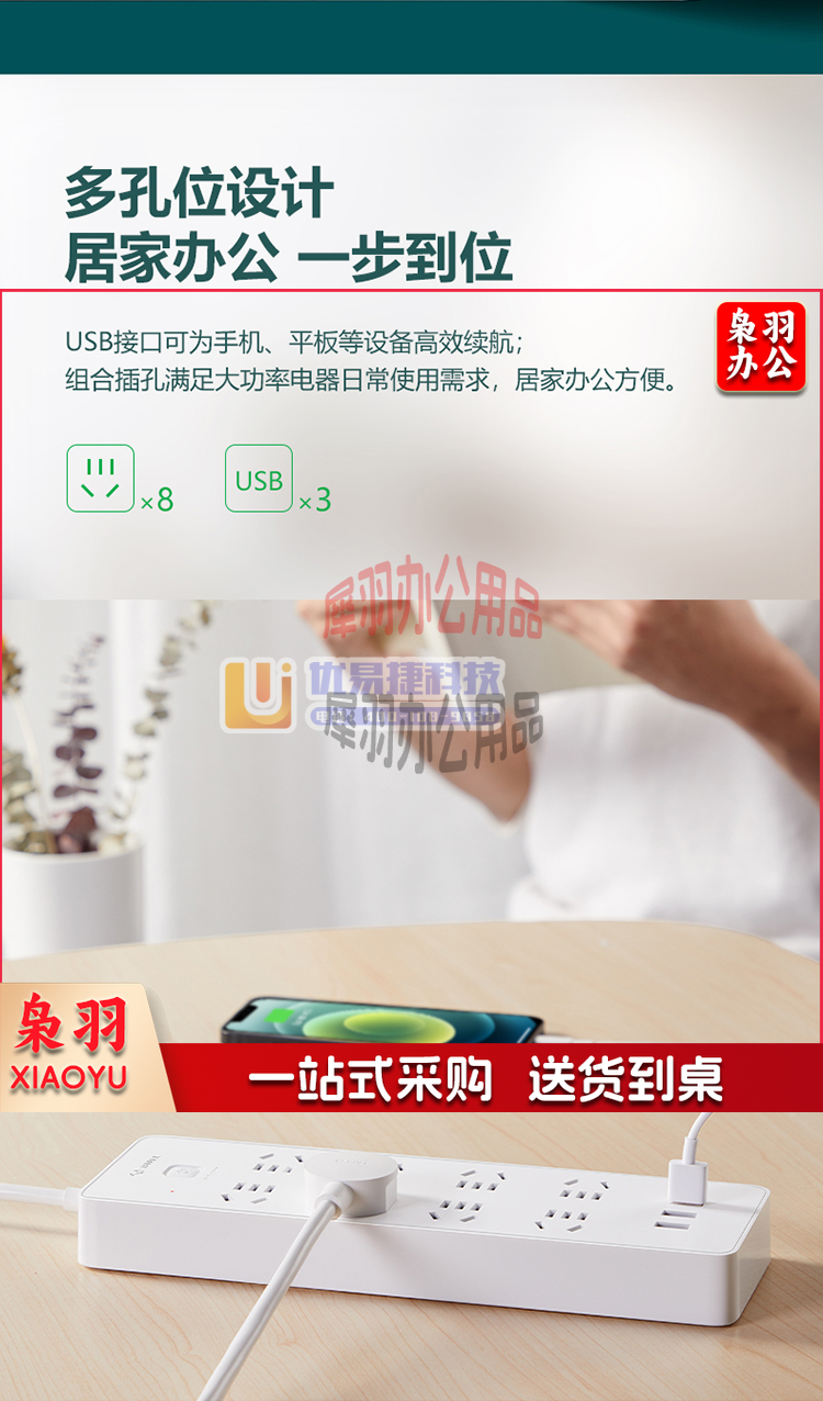 公牛(BULL)超功率保护 新国标公牛小白USB插座/插线板/插排/排插 GNV-UUN158 3usb接口 8孔全长5米