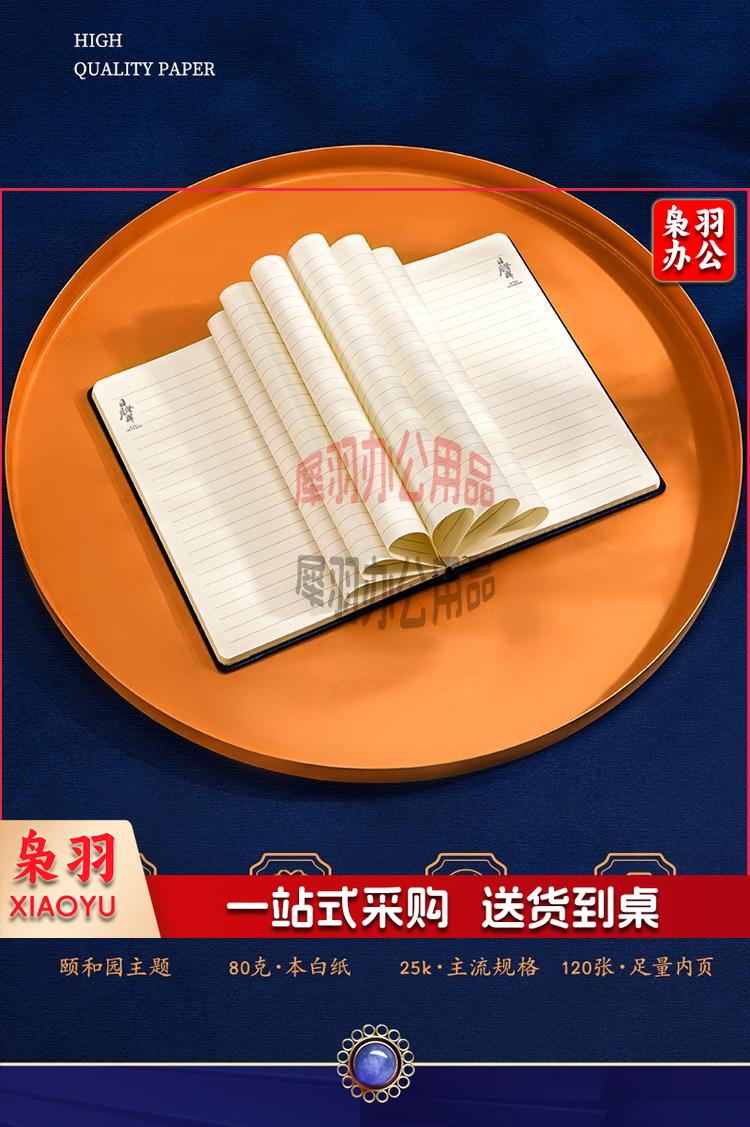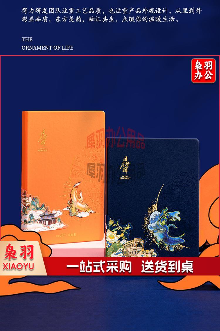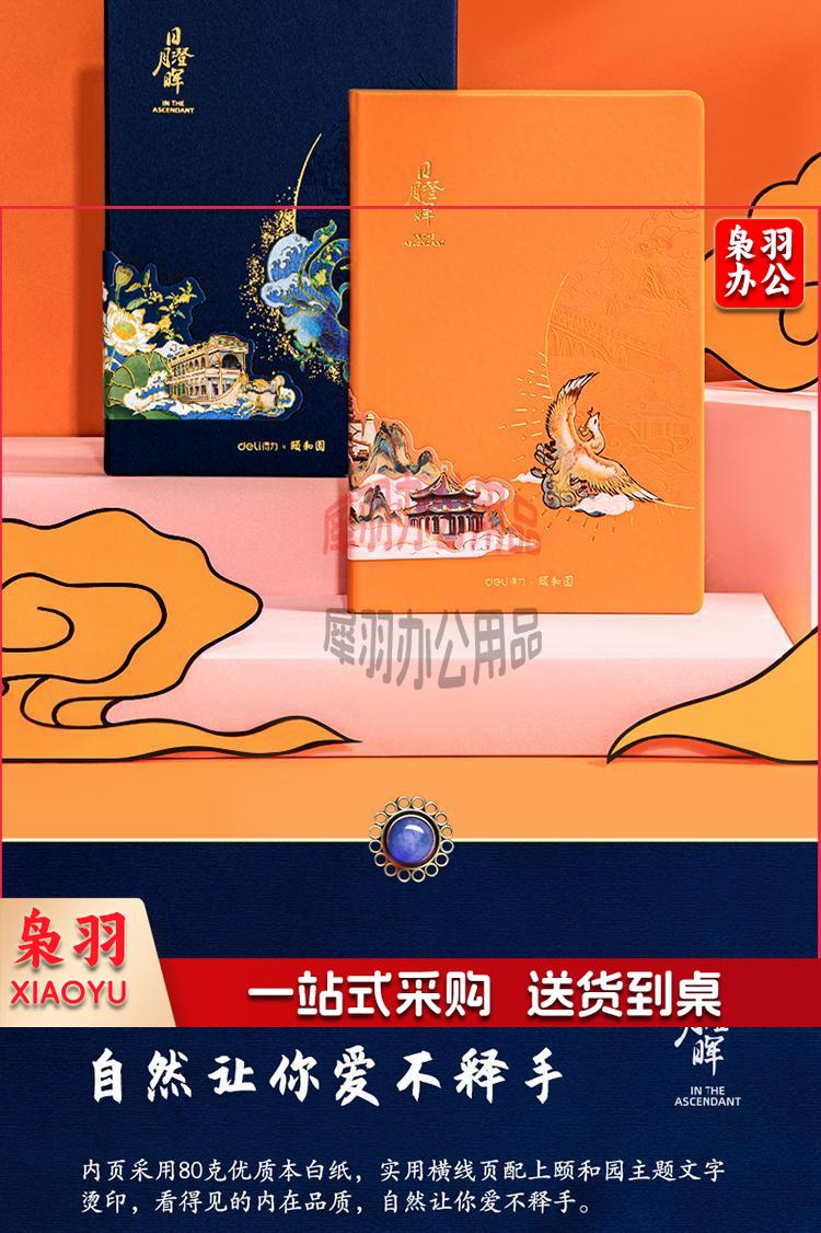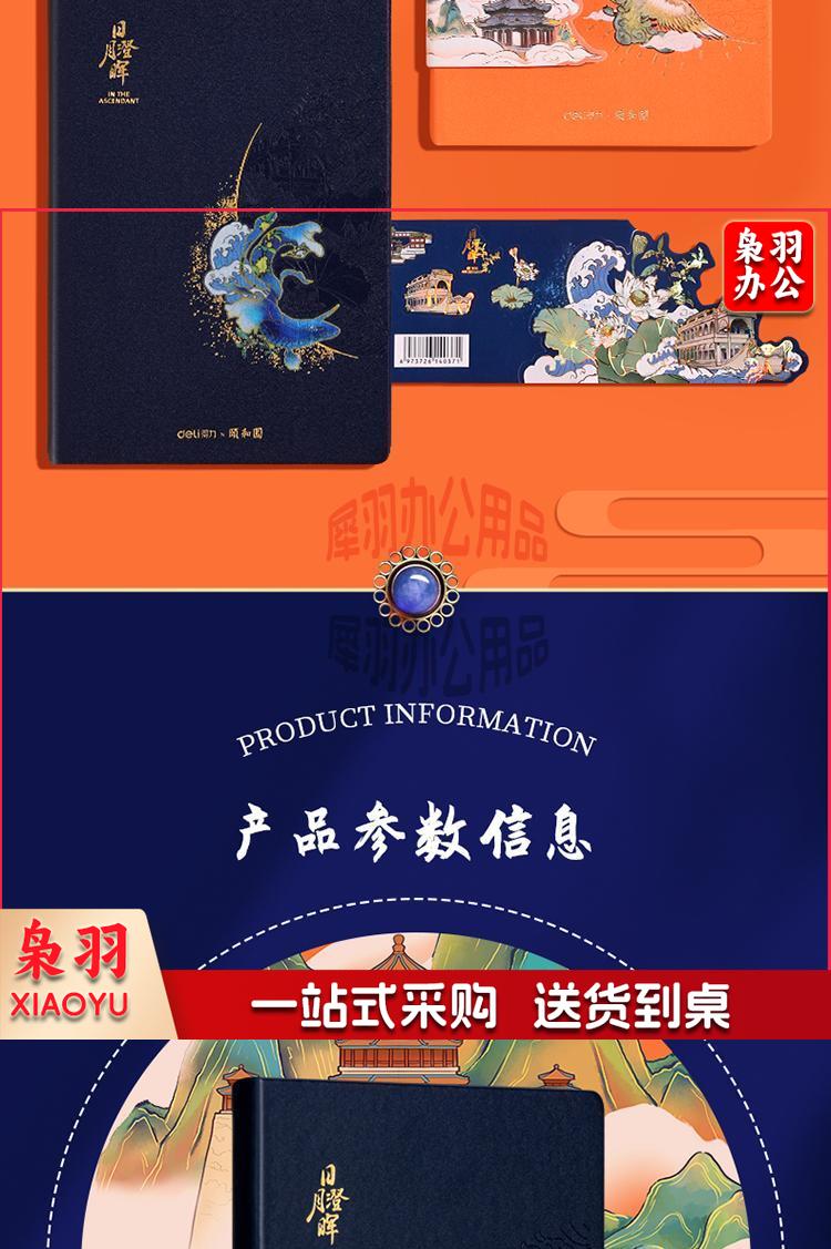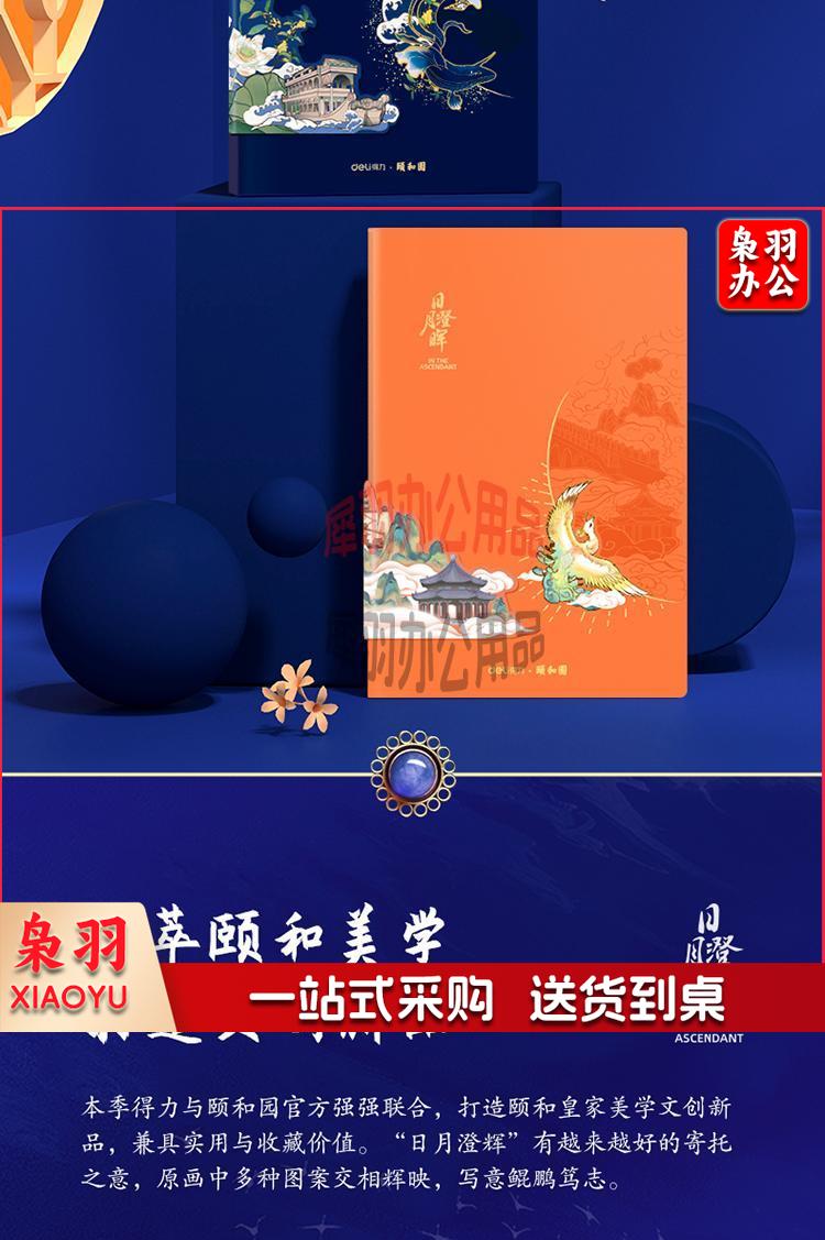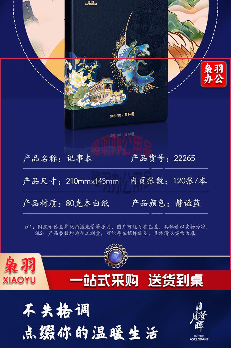 得力(deli) 25K120张颐和园系列皮面本 记事本工作笔记本子文具手账本办公用品 日月澄晖款 蓝色 22265