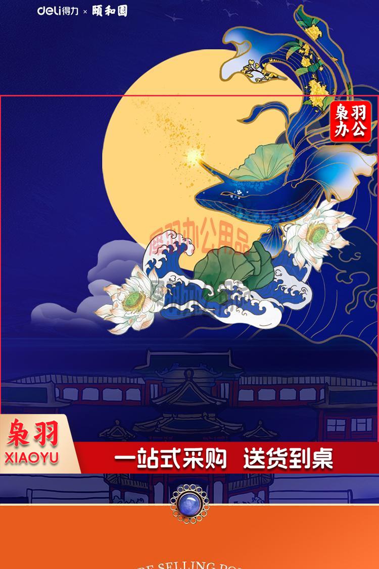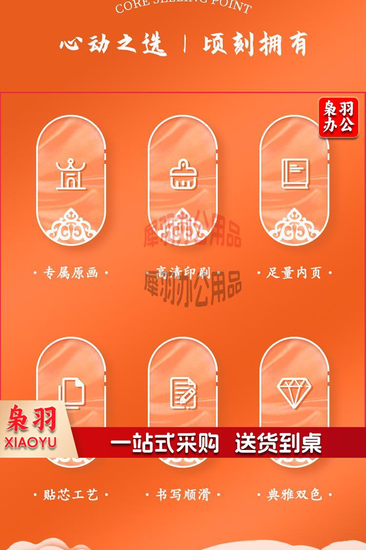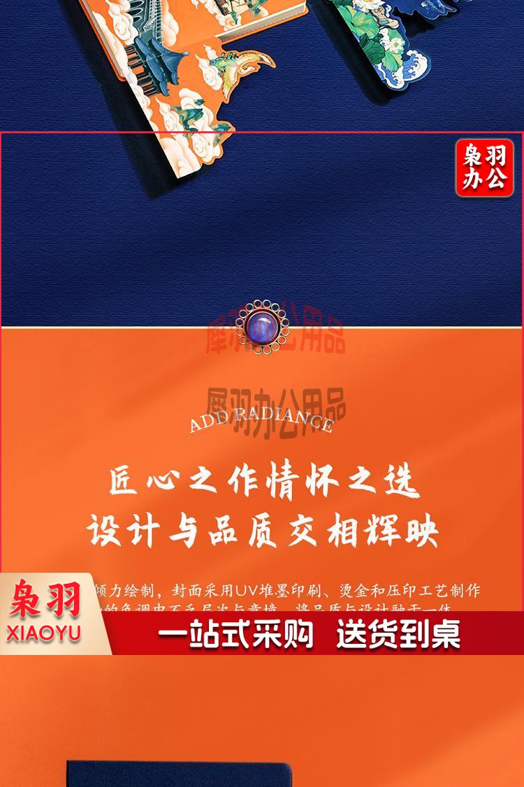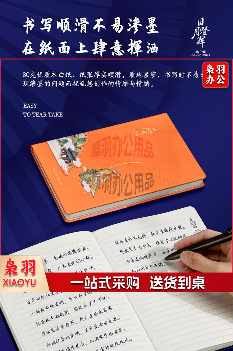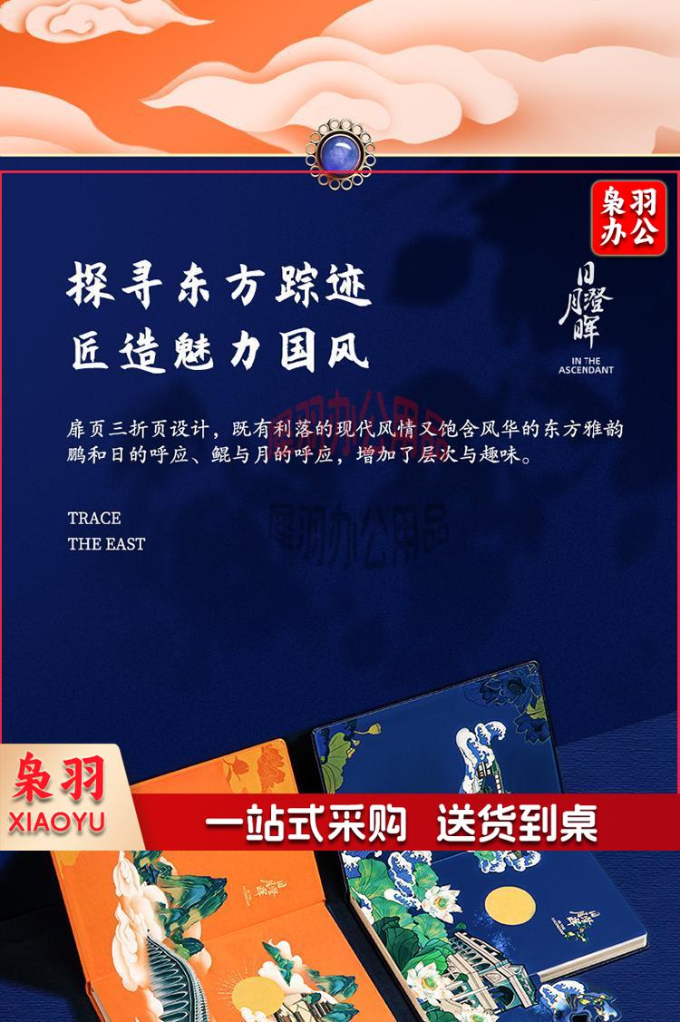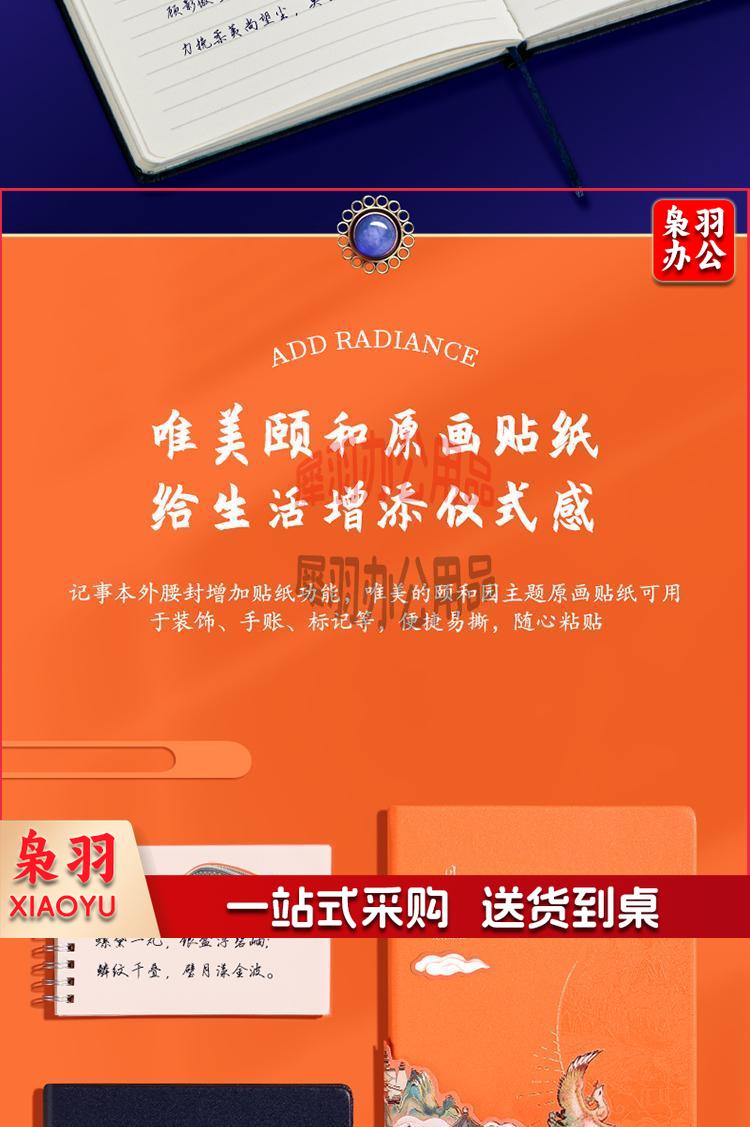 得力(deli) 25K120张颐和园系列皮面本 记事本工作笔记本子文具手账本办公用品 日月澄晖款 蓝色 22265