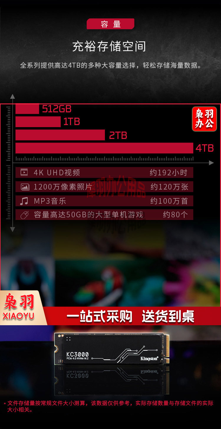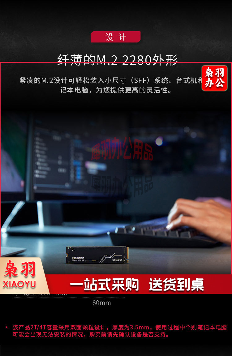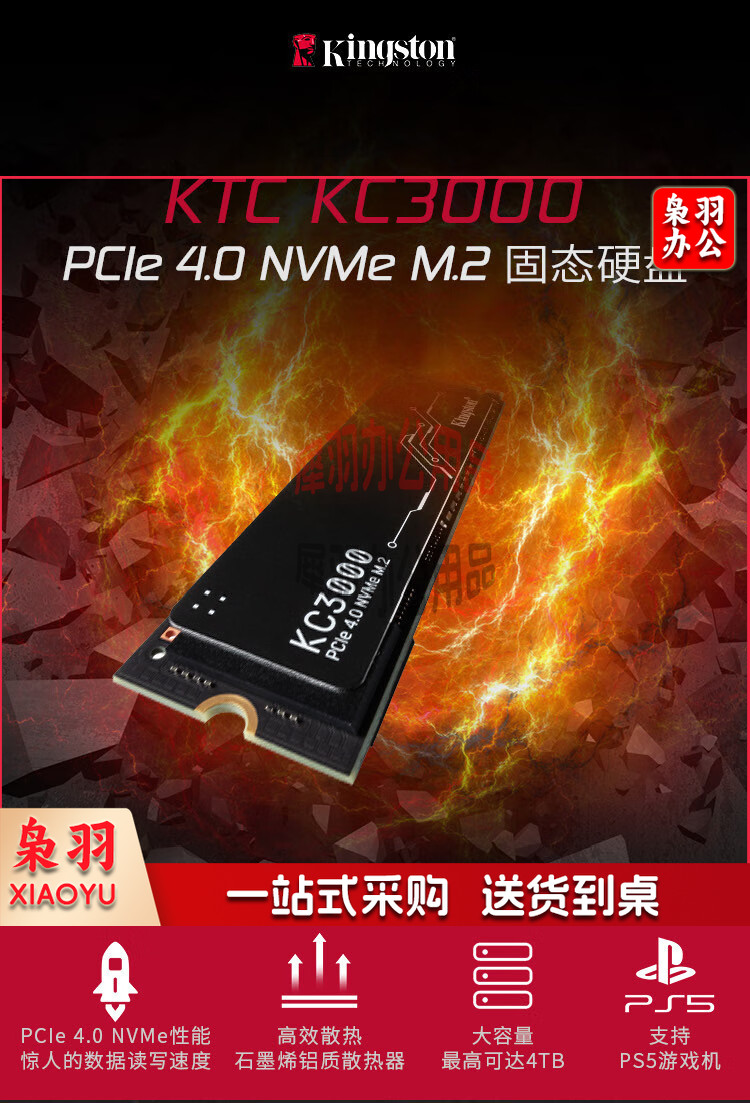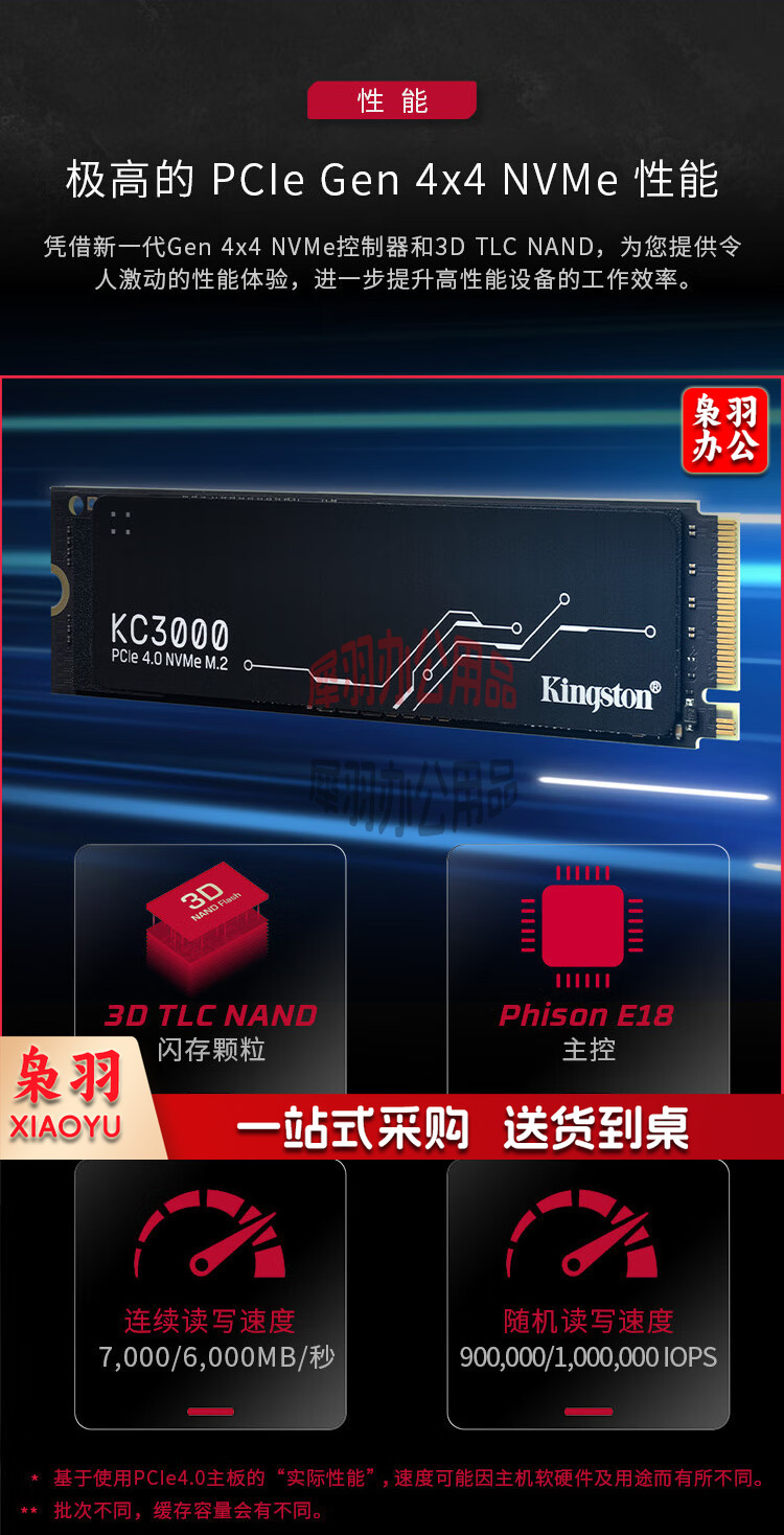金士顿(Kingston) 1TB SSD固态硬盘 M.2接口(NVMe协议 PCIe 4.0×4) KC3000系列 读速高达7000MB/s