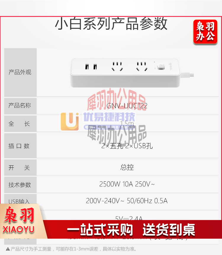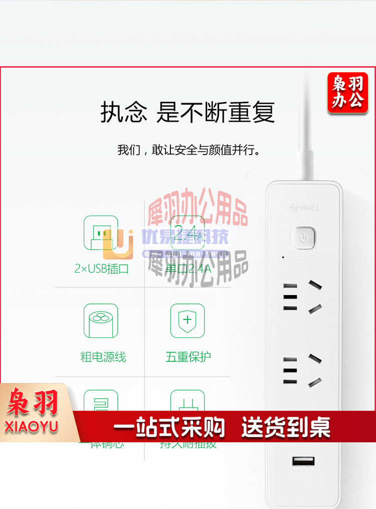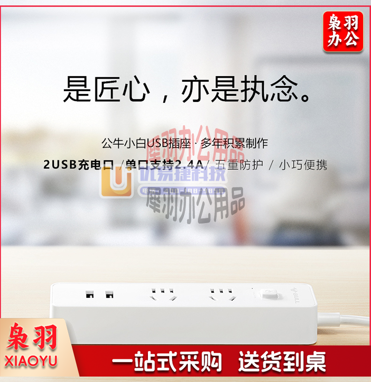 公牛(BULL)新国标小白USB插座/插线板/插排/排插/拖线板 2usb接口+2孔全长1.5米 GNV-UUC122