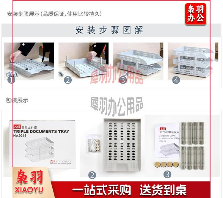 得力(deli)三层小孔距耐用文件座 自由拆卸组装三层文件盘/文件框 牢固耐用 资料整理收纳 灰色9215