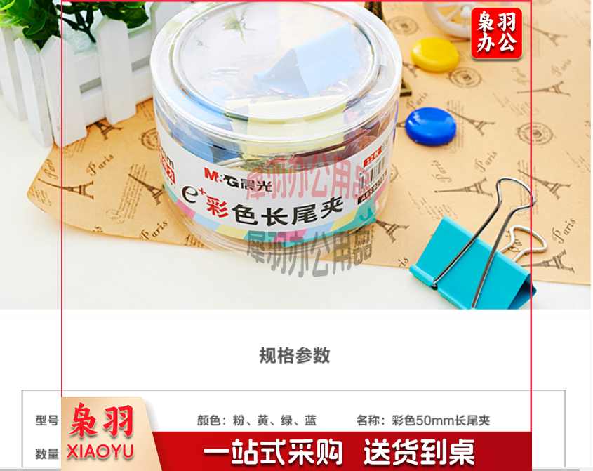 晨光 M&G ABS92738 彩色长尾夹 (50mm 12枚/筒 单筒装)