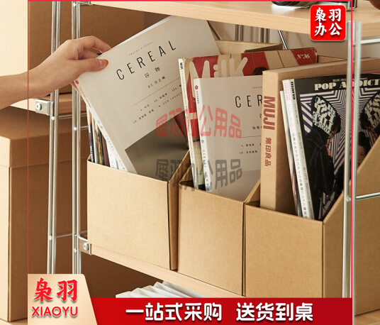 牛皮纸收纳盒书本文件夹办公室桌面文具纸质书立盒书桌收纳置物架格 小号