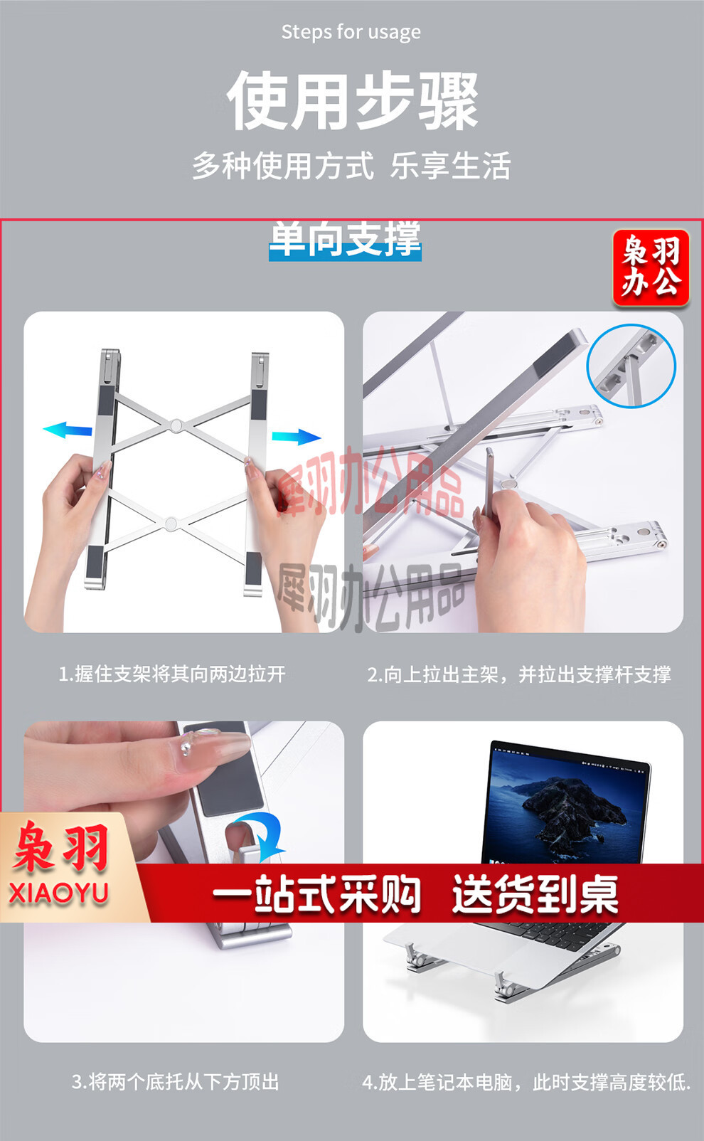 派凡 笔记本电脑支架 全铝合金便携可折叠电脑支架升降笔记本散热器桌面增高架托苹果MacBook 金属灰【全铝合金+双向增高+多档调节】