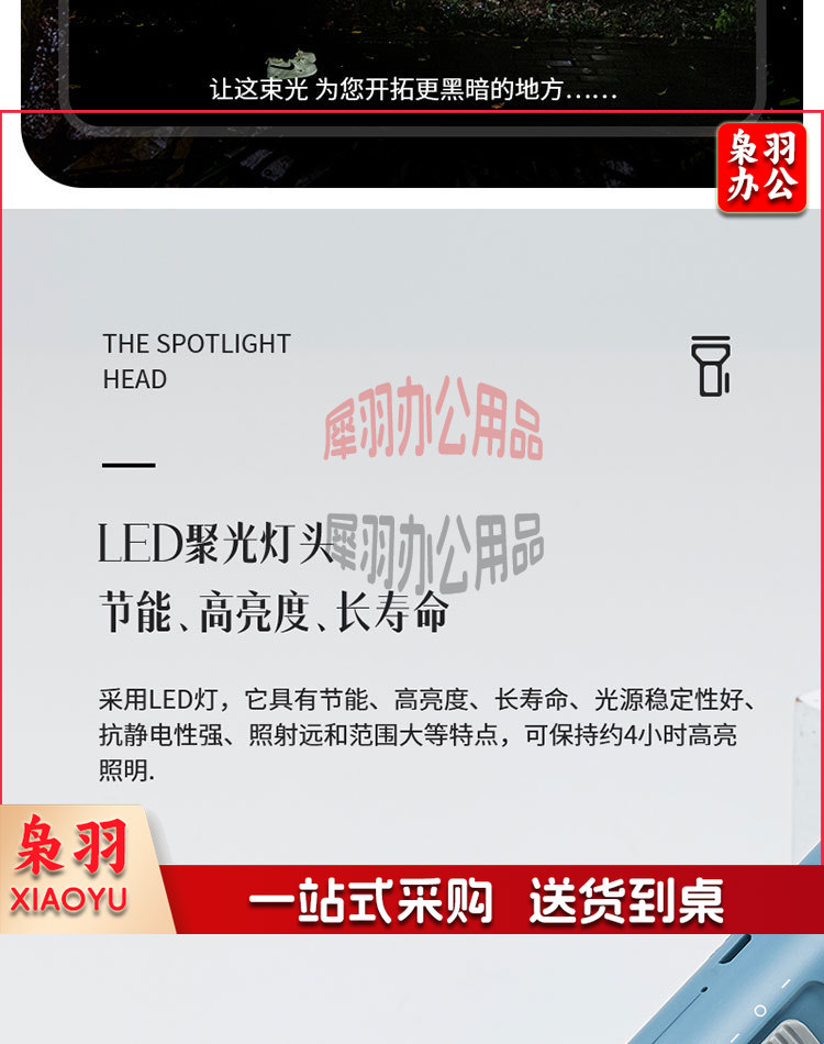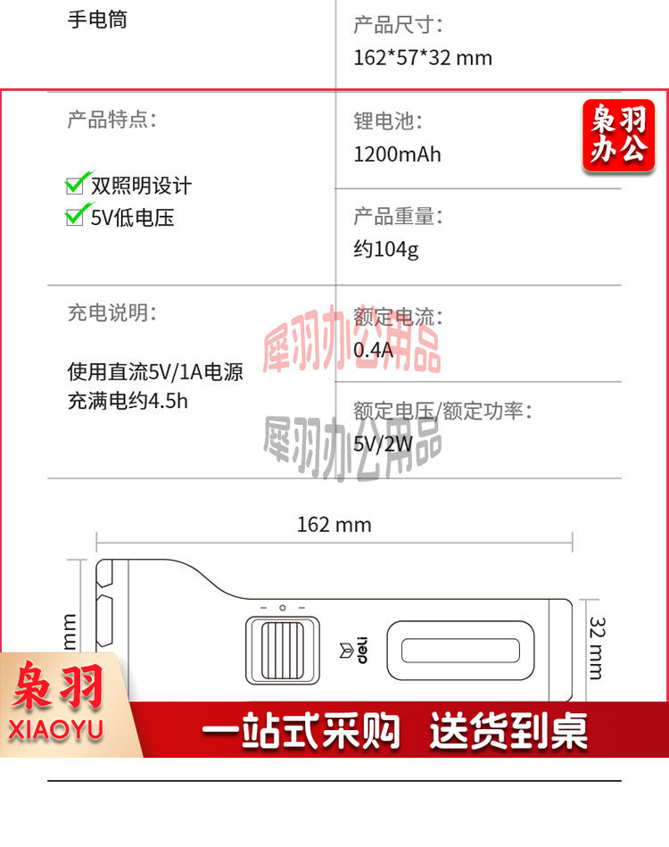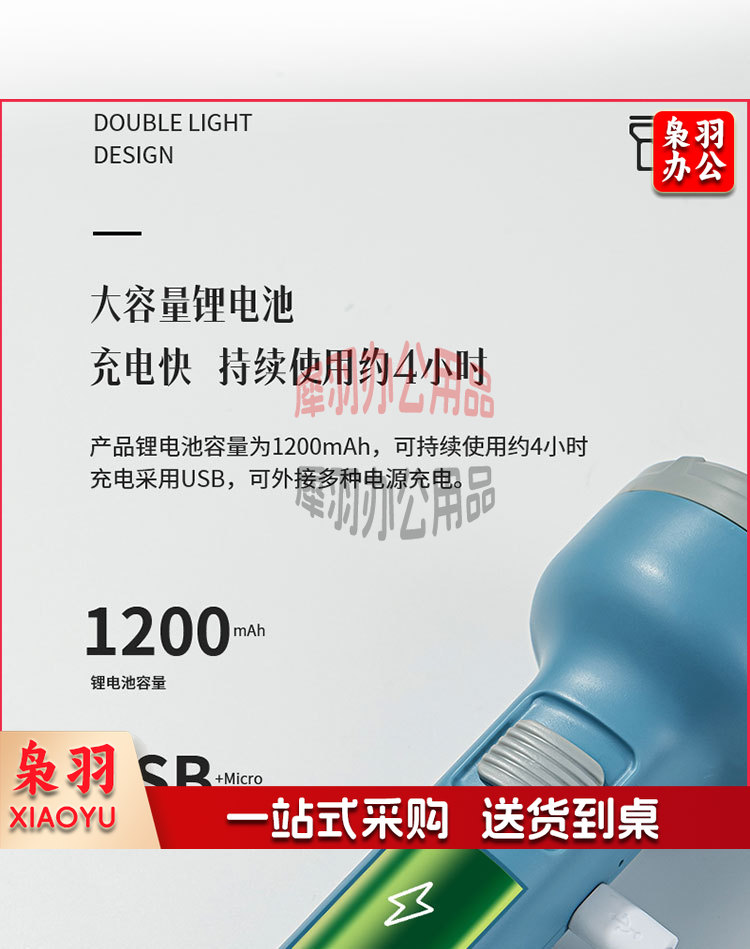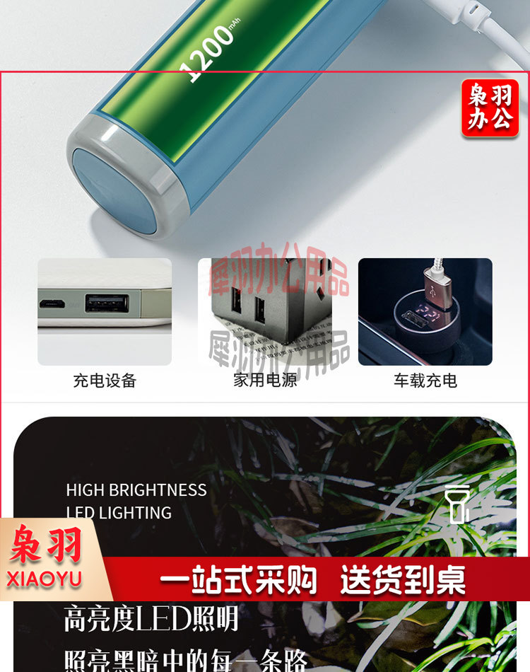 得力 3663A LED可充电式手电筒 USB充电轻巧便携 3663A 单位:个