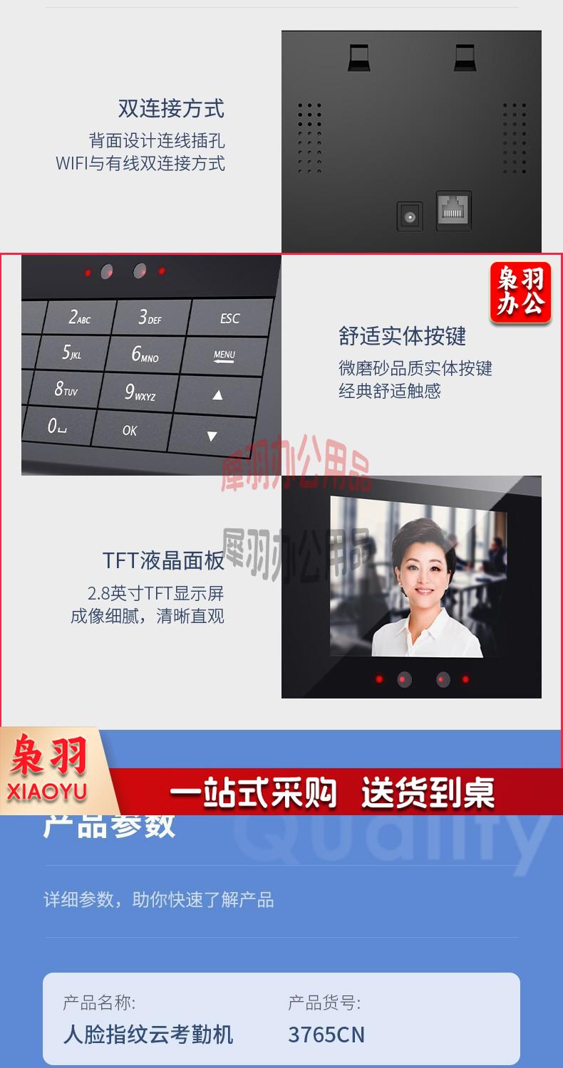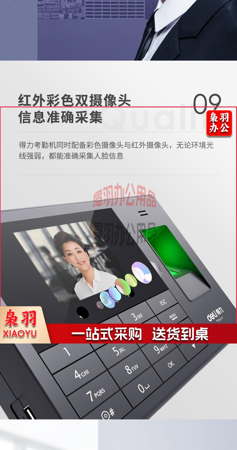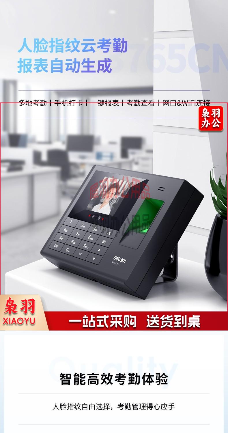得力(deli) 3765CN 考勤机人脸指纹 人脸打卡机人脸识别 签到机 wifi/网口 500人脸+1000指纹 商用办公