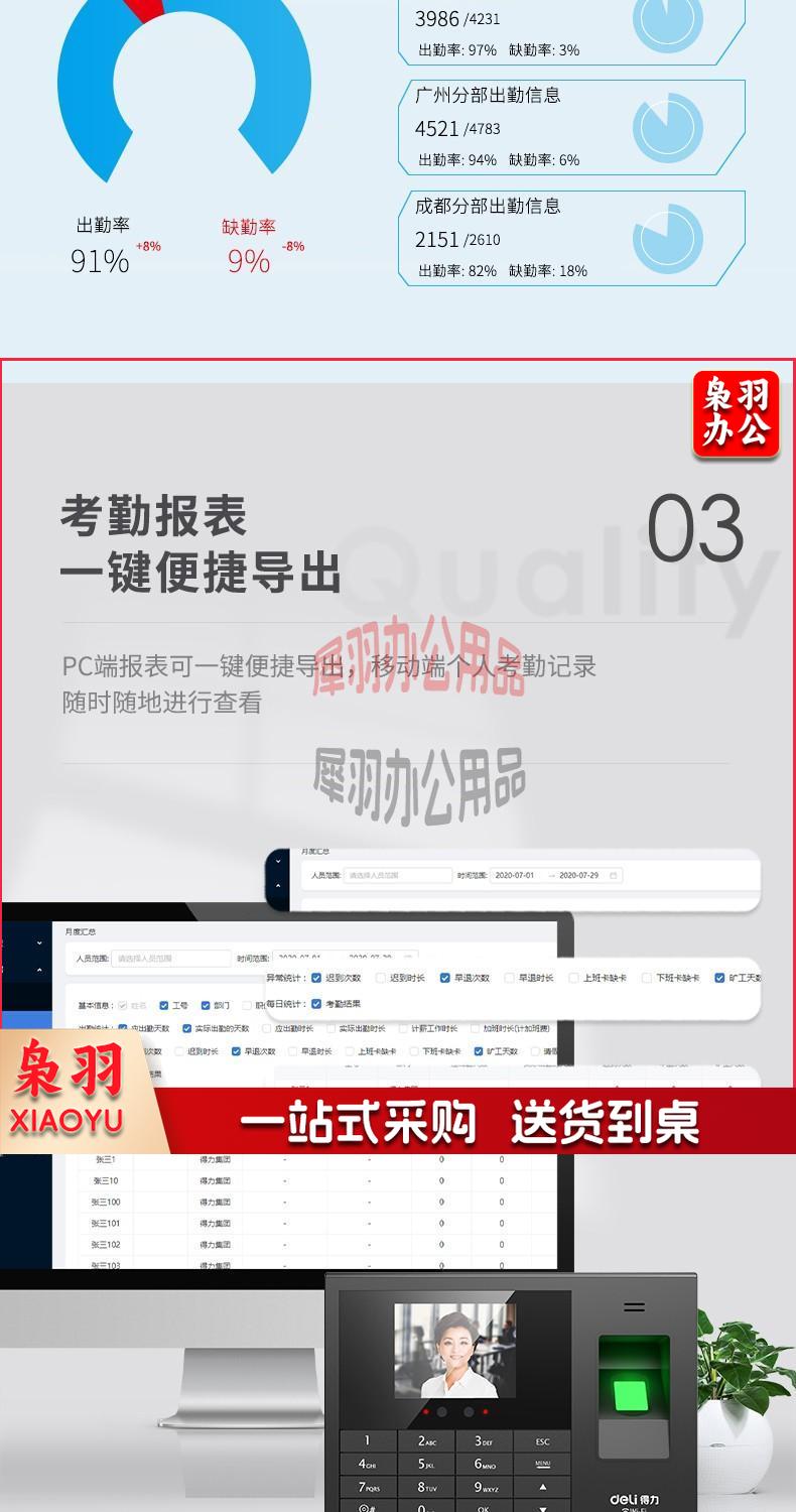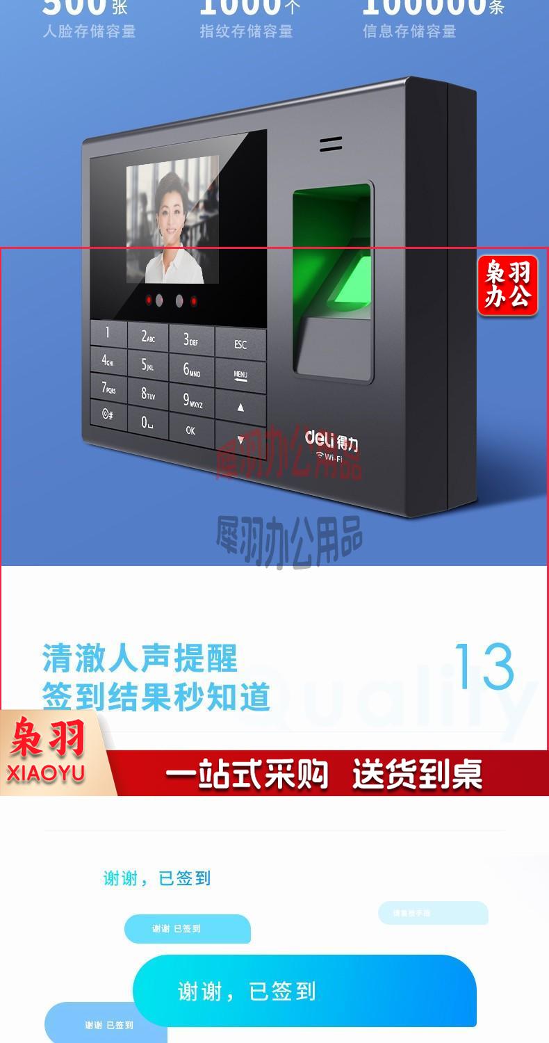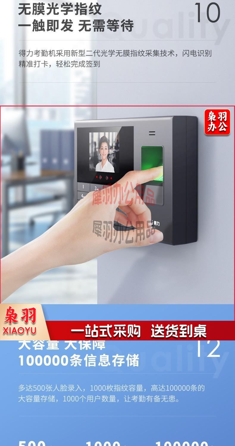 得力(deli) 3765CN 考勤机人脸指纹 人脸打卡机人脸识别 签到机 wifi/网口 500人脸+1000指纹 商用办公