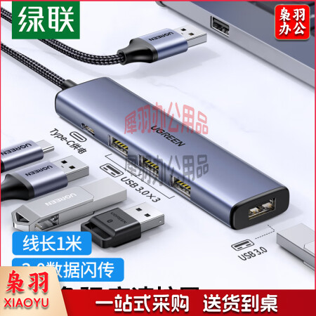 绿联15922 USB3.0分线器扩展坞 1米高速4口HUB集线器拓展坞 适用笔记本电脑 一拖多转换器转接头带供电口