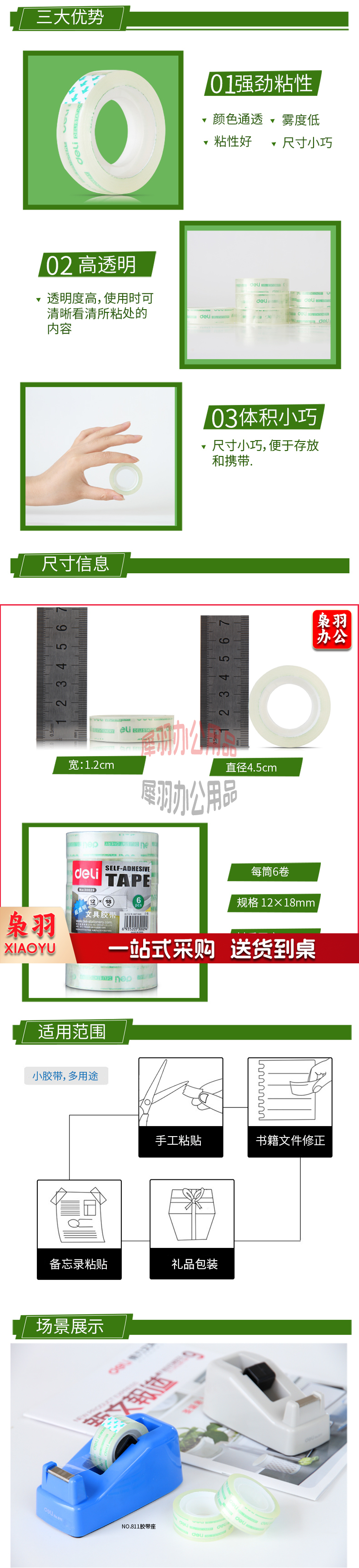 得力30029学生胶带12mm*18m*38um 6卷/筒(卷)