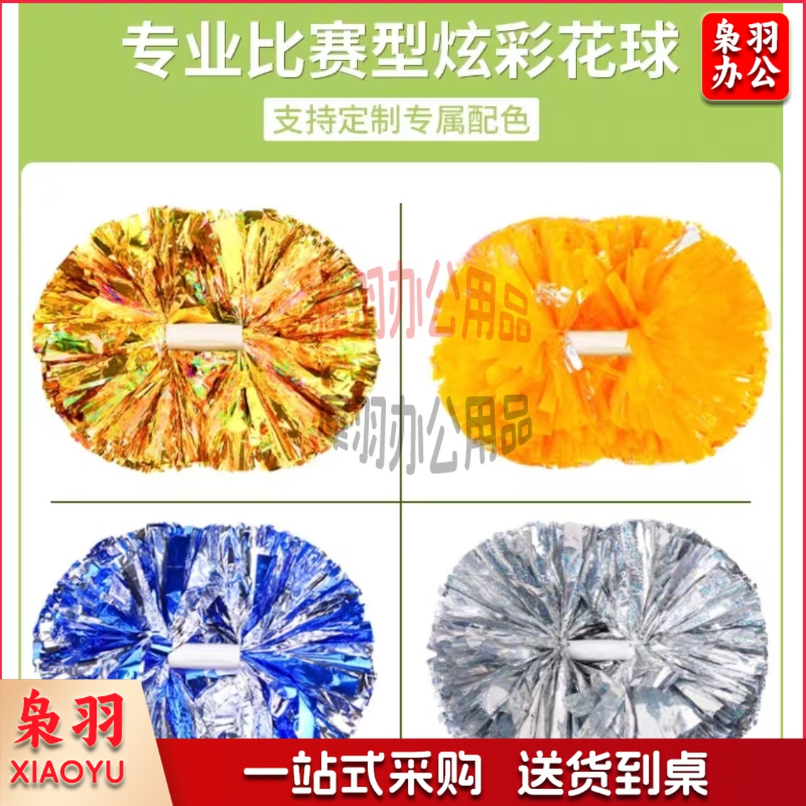 啦啦操花球拉拉队花球 大号手柄6寸彩虹混金【30cm*37cm】