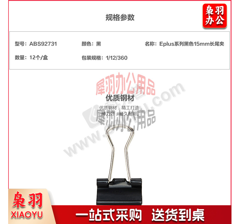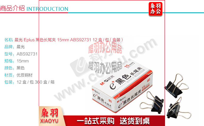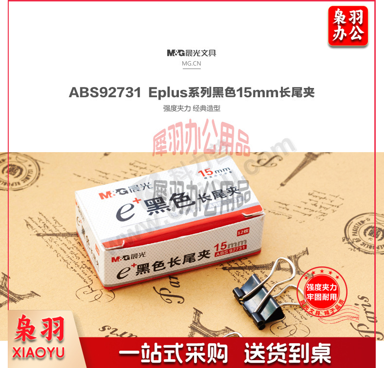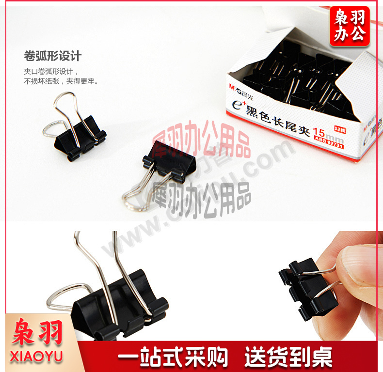 晨光 M&G Eplus盒装黑色长尾夹 6号 ABS92731 15mm 12个/盒