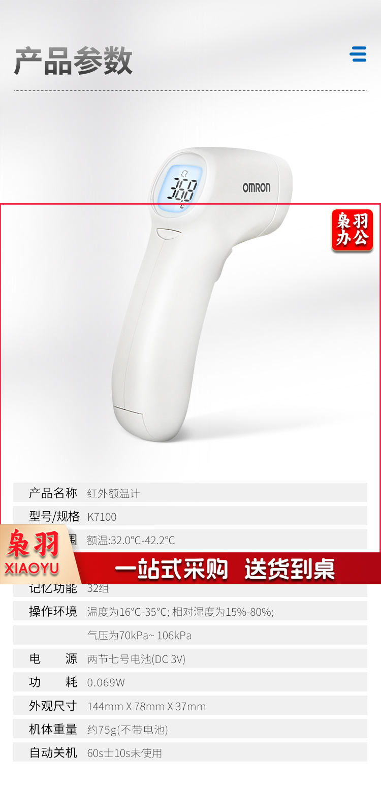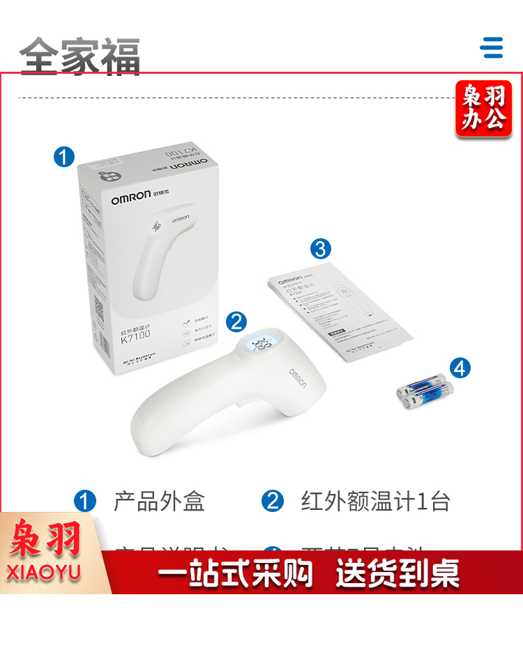 欧姆龙(OMRON)红外额温枪电子体温计 家用温度计 儿童婴幼儿成人体温枪测温仪K7100