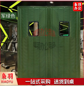 军绿色带窗户门帘 布艺棉门帘 单位:每平米 (支持,有货期,提前沟通)
