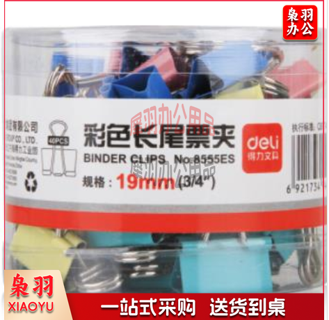 得力 8555ES 彩色 长尾票夹 筒装(混)(40只/筒) 单位:盒
