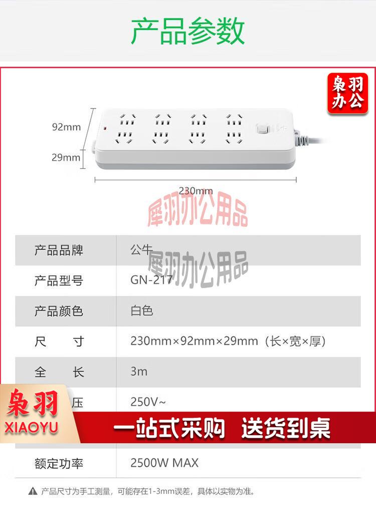 公牛(BULL)GN-217 插座/插线板/插排/排插/接线板/拖线板 8位总控全长1.8米