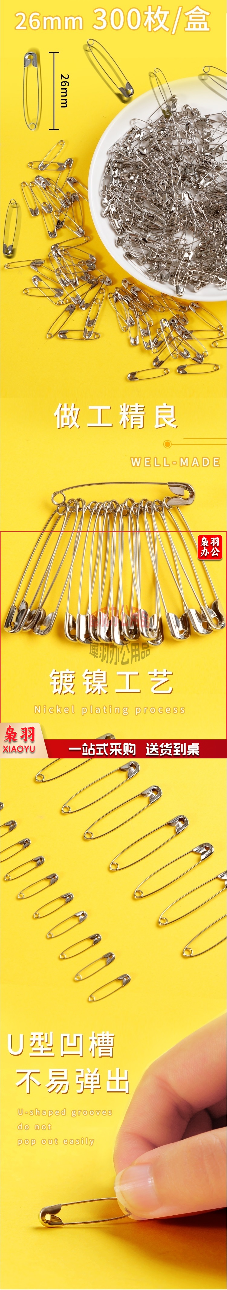26mm 银色大号别针 300枚/盒