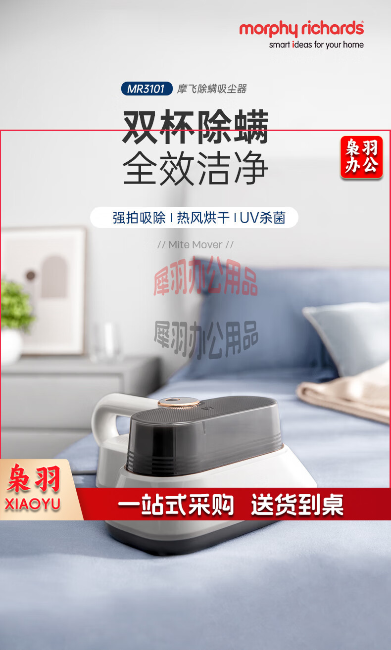 摩飞电器(Morphyrichards)除螨仪 双杯家用手持吸尘除螨机 大吸力床上拍打去螨虫机 热风祛湿紫外线杀菌机MR3101