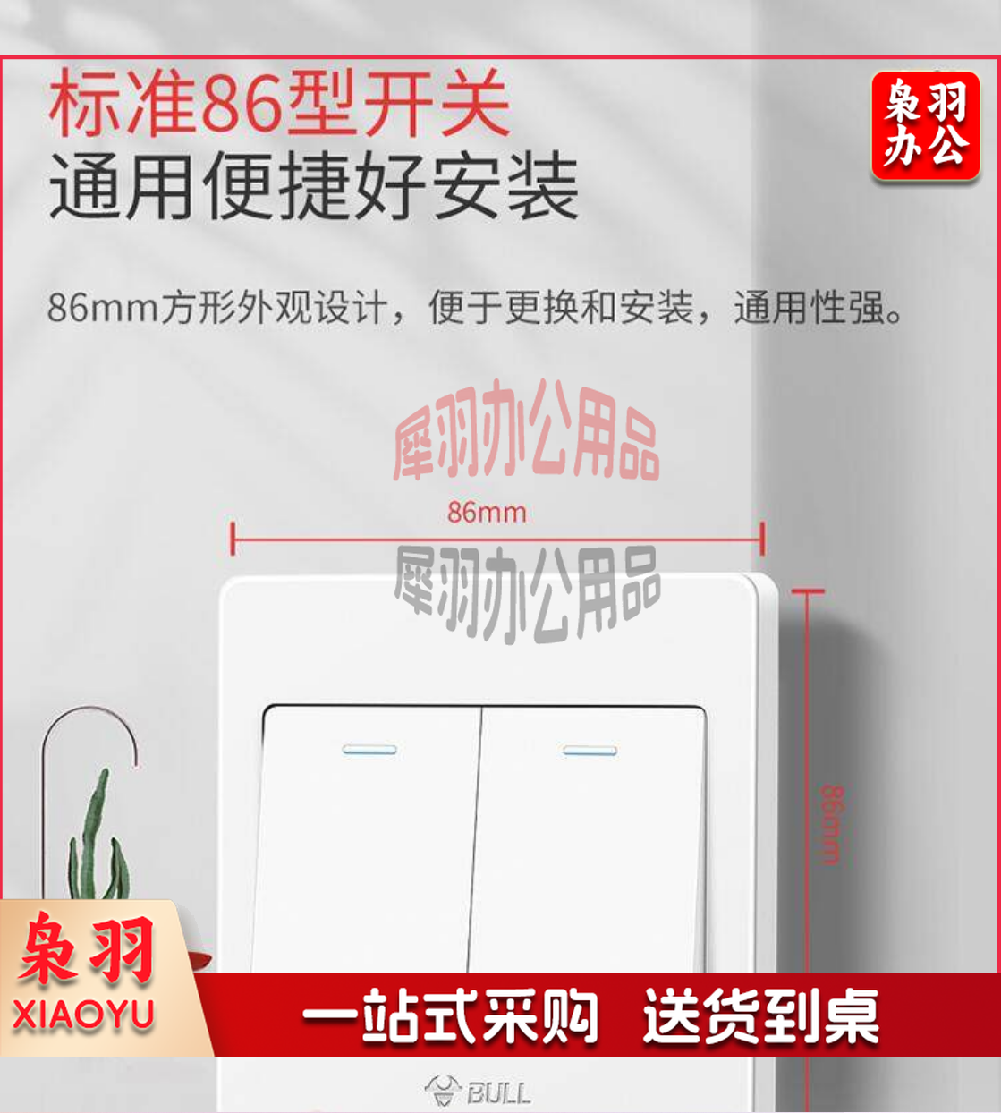 公牛(BULL) 墙壁开关 G07系列 二开单控开关 86型面板G07K211C 白色 暗装