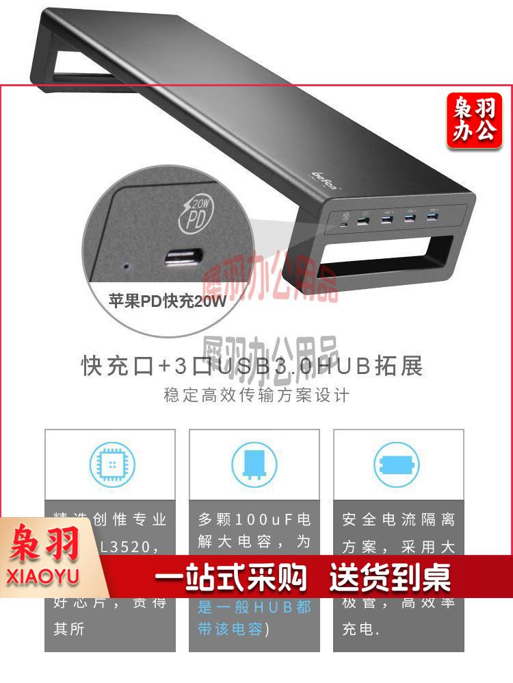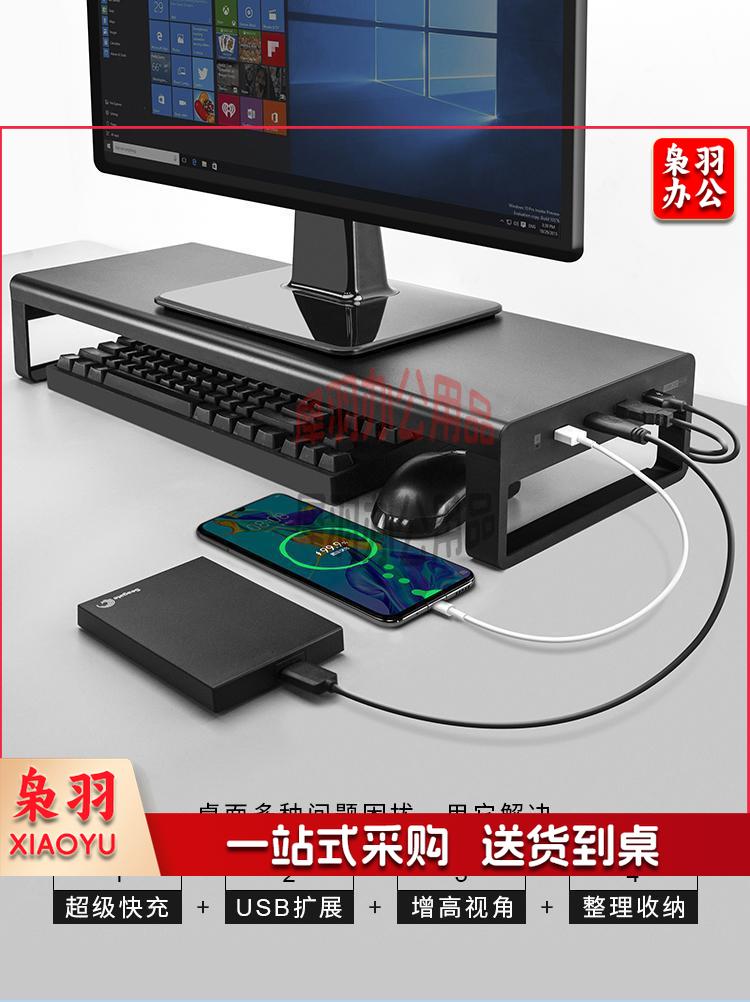 倍方 电脑显示器增高架 超级快充款+3口usb3.0 显示器支架 键盘收纳架 电脑支架 桌面置物架底座托架