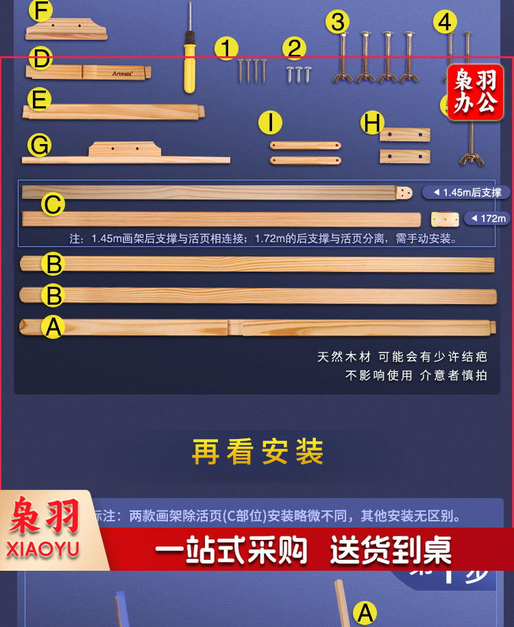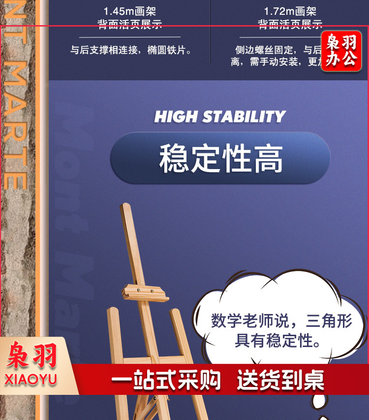 蒙玛特(Mont Marte)AEA0003 1.45米松木画架 实木素描画架画板套装展示架子成人儿童折叠画板架 原木色