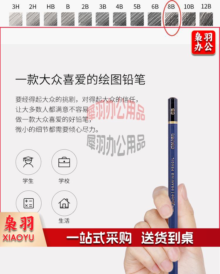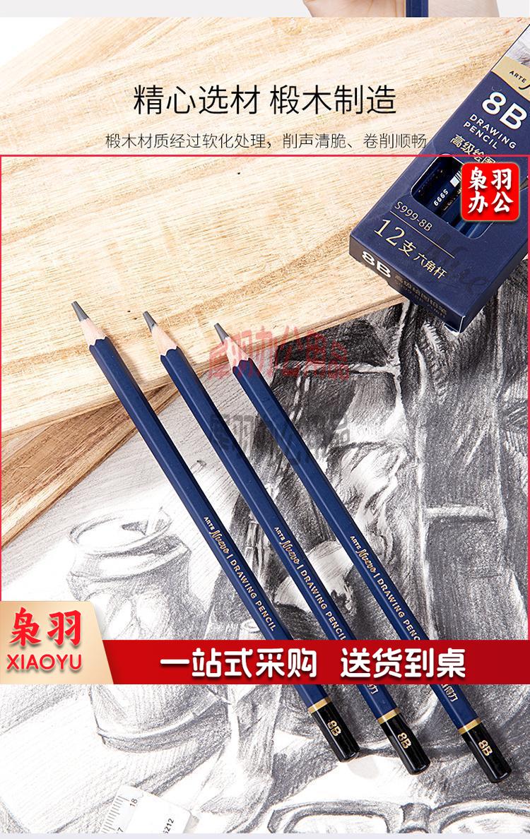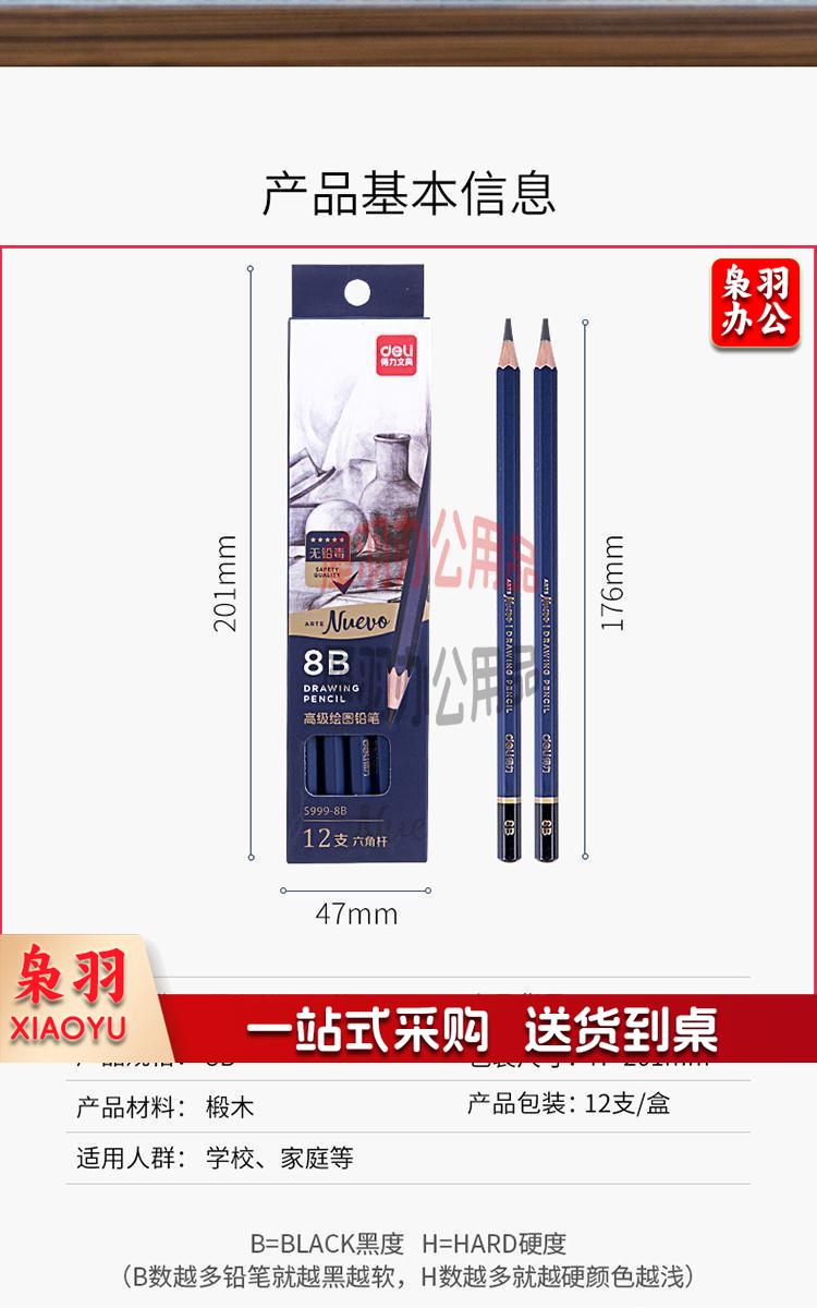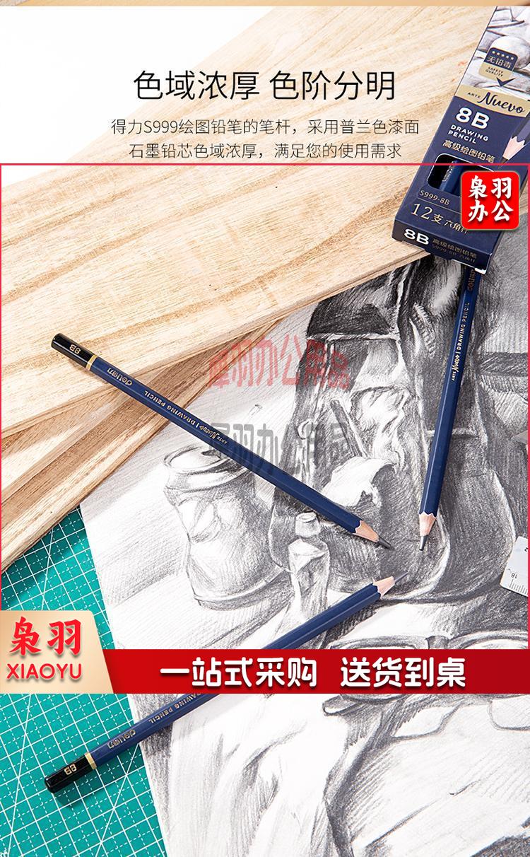 得力(deli)高级美术绘图8B铅笔 学生素描速写铅笔 12支/盒 S999-8B