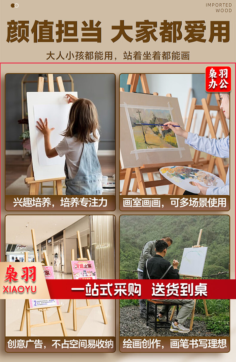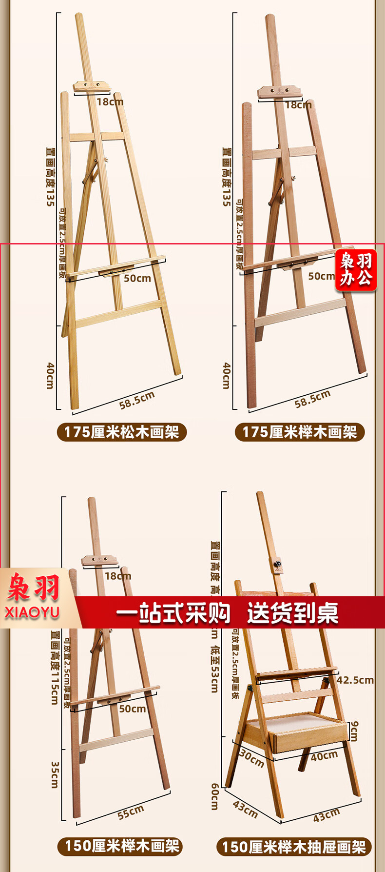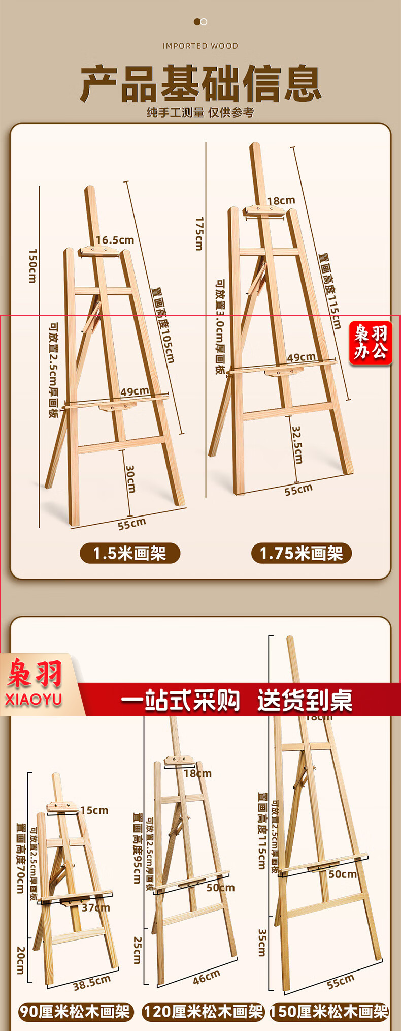 马利(Marie's)150cm松木画架 实木素描画架画板套装展示架子成人儿童折叠画板架
