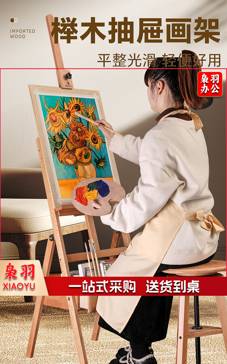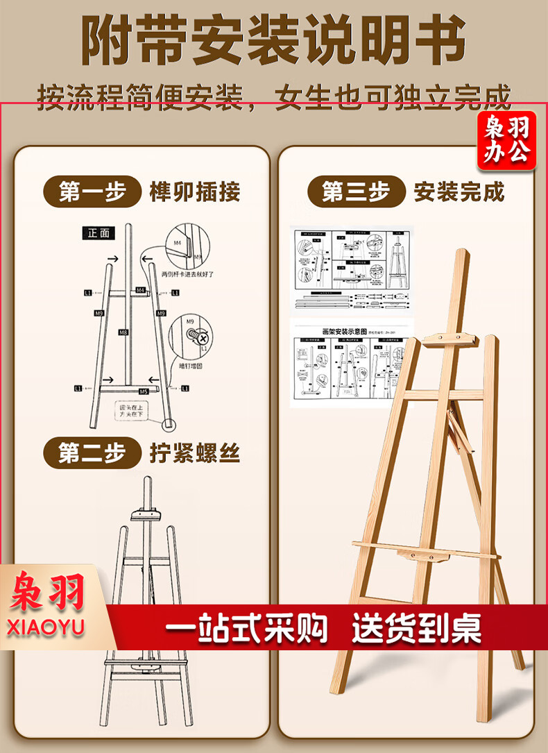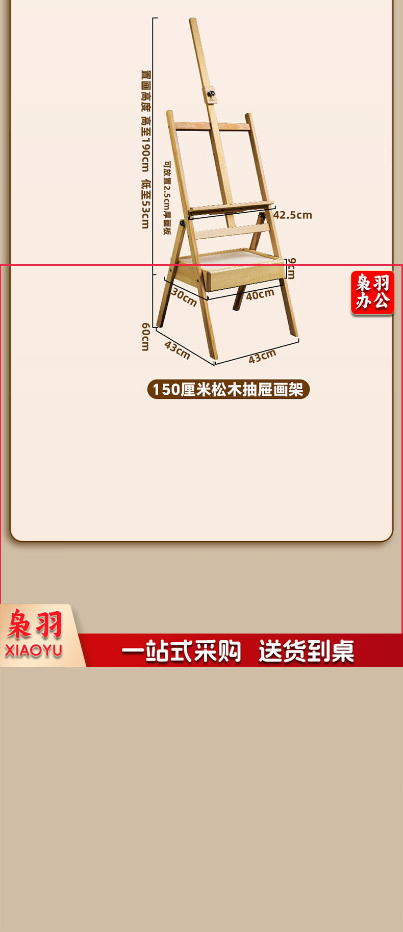 马利(Marie's)150cm松木画架 实木素描画架画板套装展示架子成人儿童折叠画板架