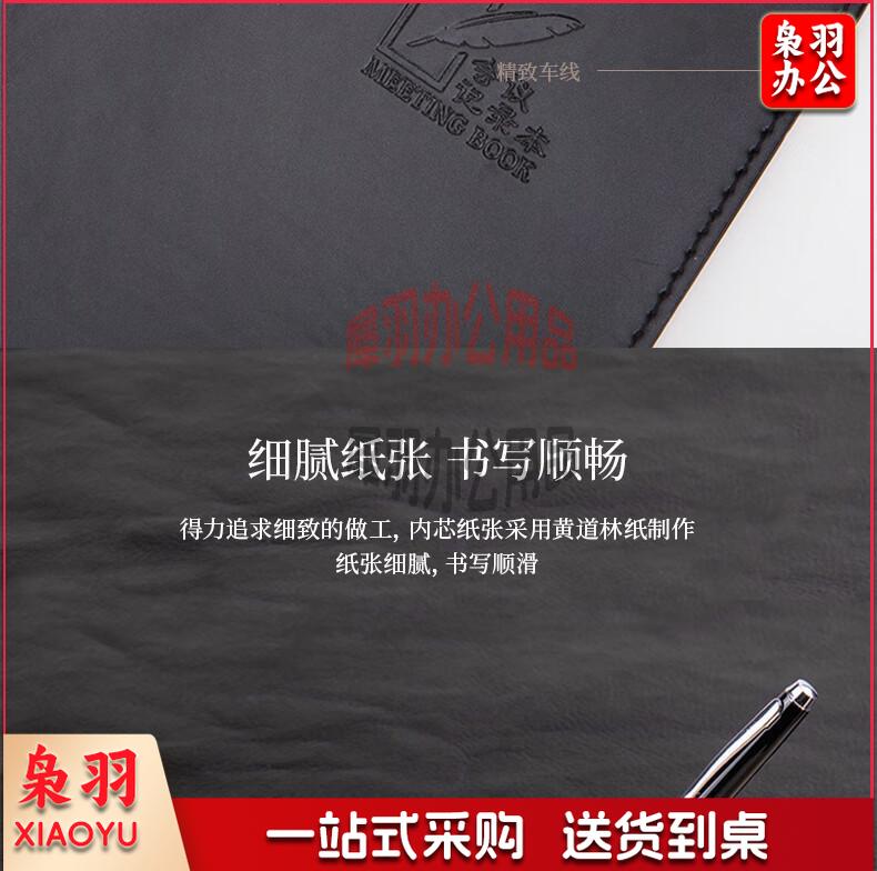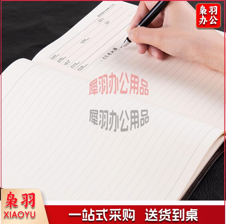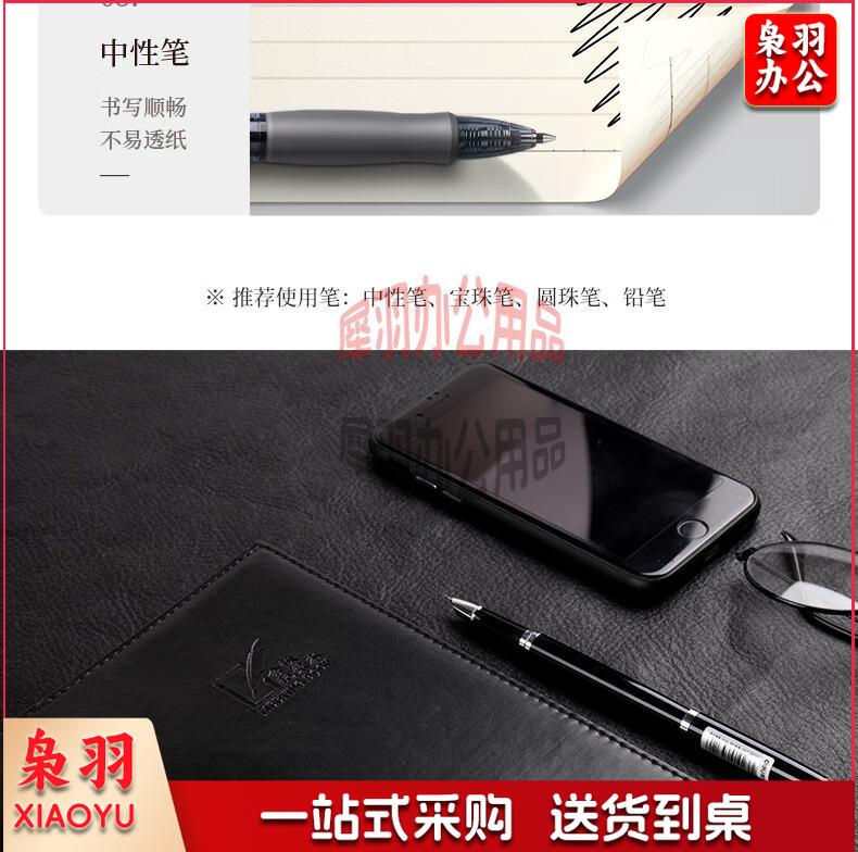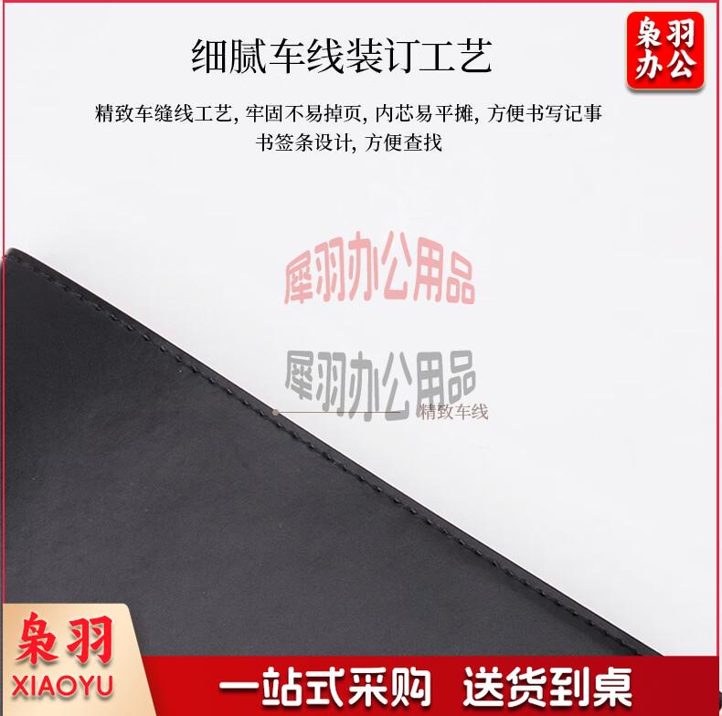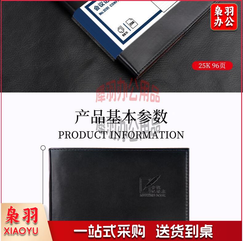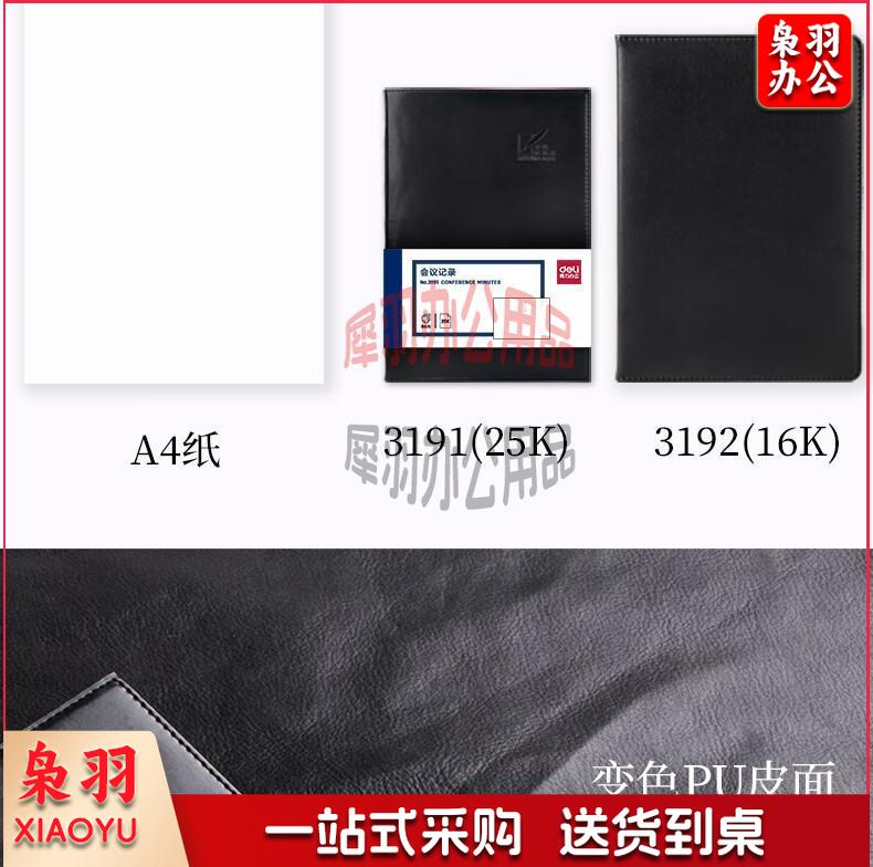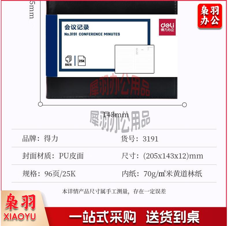 得力(deli)25K96张商务会议记录本办公用品 皮面本记事本工作笔记本子 黑色3191