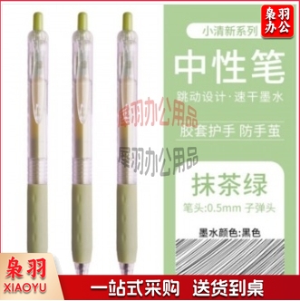 白雪(snowhite)G-202速干按动中性笔学生用莫兰迪色抹茶绿外观小清新子弹头0.5mm黑色墨水12支/盒