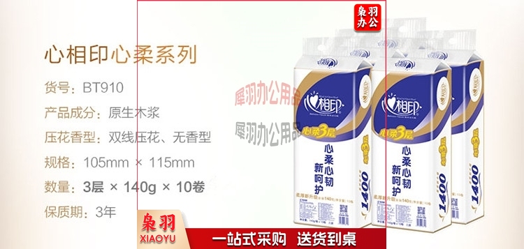 心相印 BT910蓝色特柔卷纸 105*115mm 3层 140g*10卷