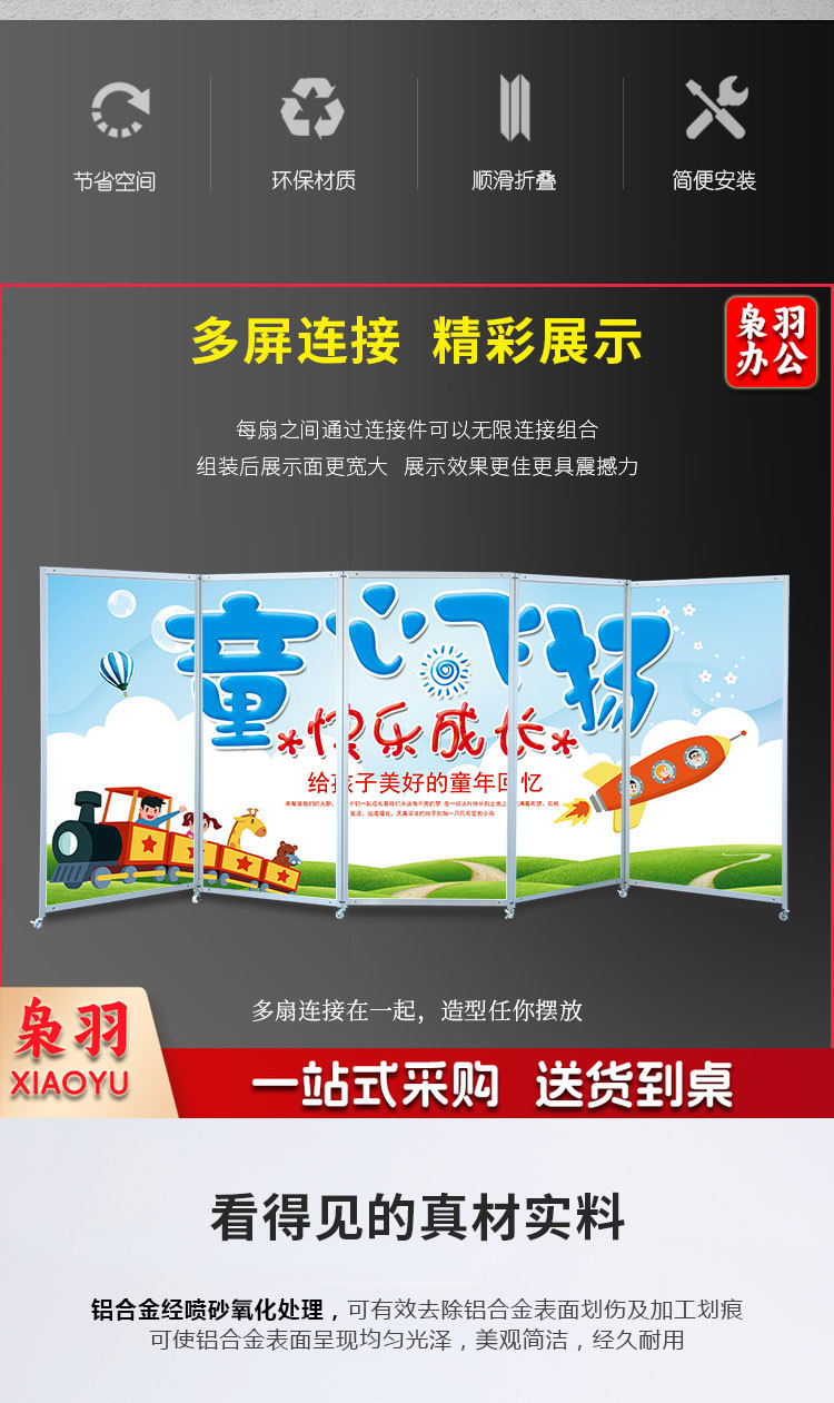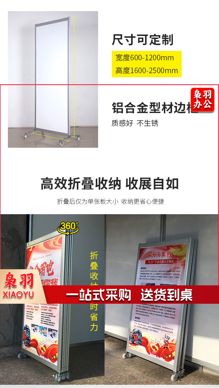 书画展版学校美术作品展板宣传屏风 移动展板书画展示架折叠展板1.2*2.2米