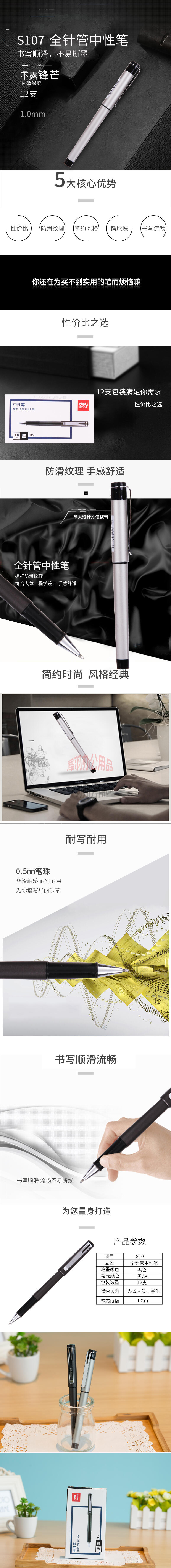 得力S107中性笔1.0mm子弹头(黑)