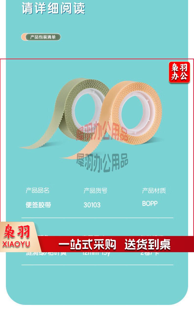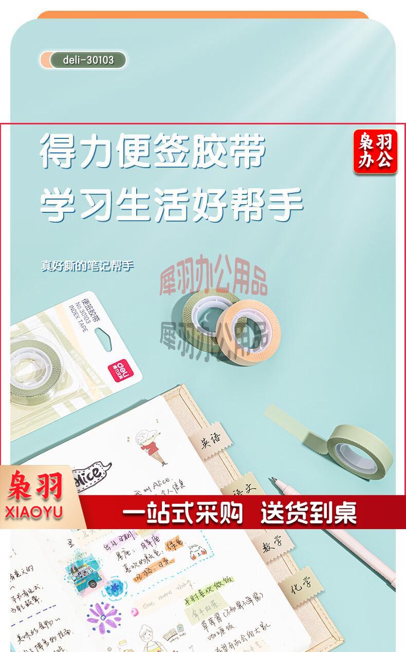 得力(deli) 简约便利贴便签纸 胶带纸 记事贴/自粘留言本 办公用品12mm*15y*70μm 2卷 30103