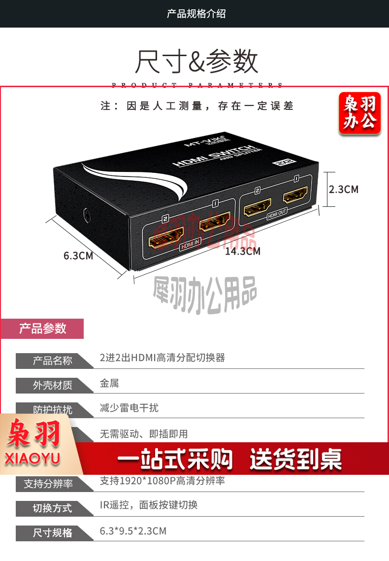 迈拓维矩 MT-HD2-2 HDMI切换分配器2进2出