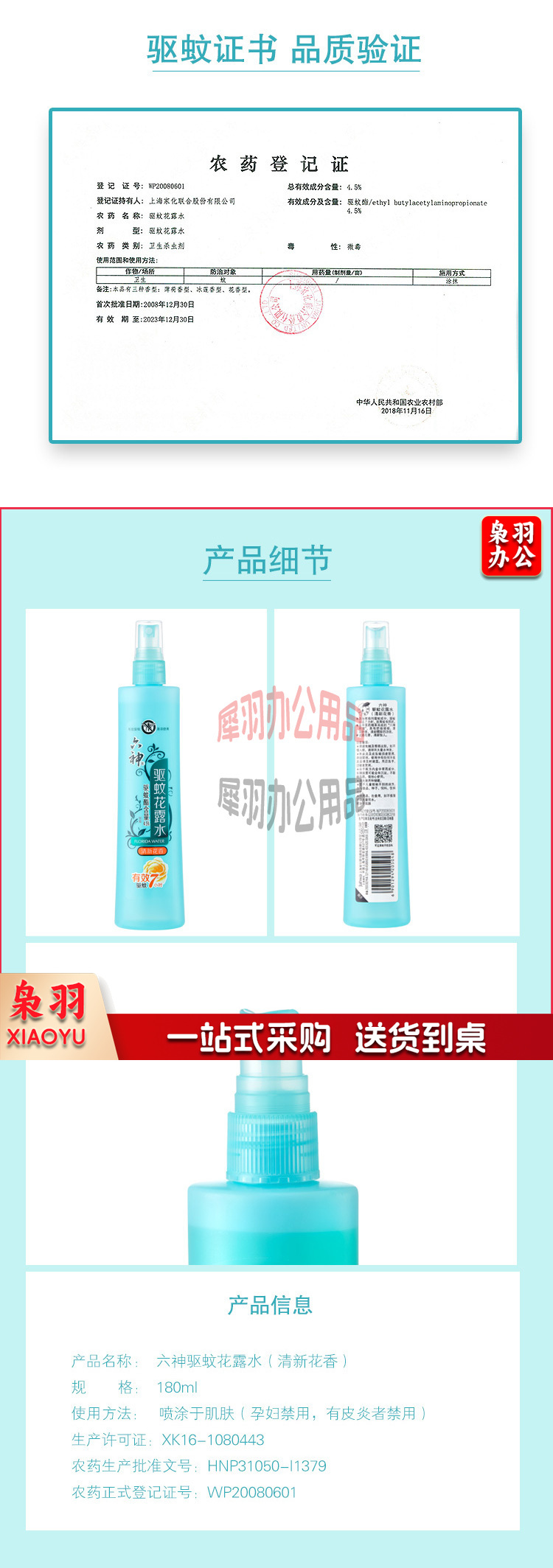 六神【驱蚊喷雾】清新花香花露水180ml*3(蚊怕水 驱蚊液止痒祛痱舒爽)
