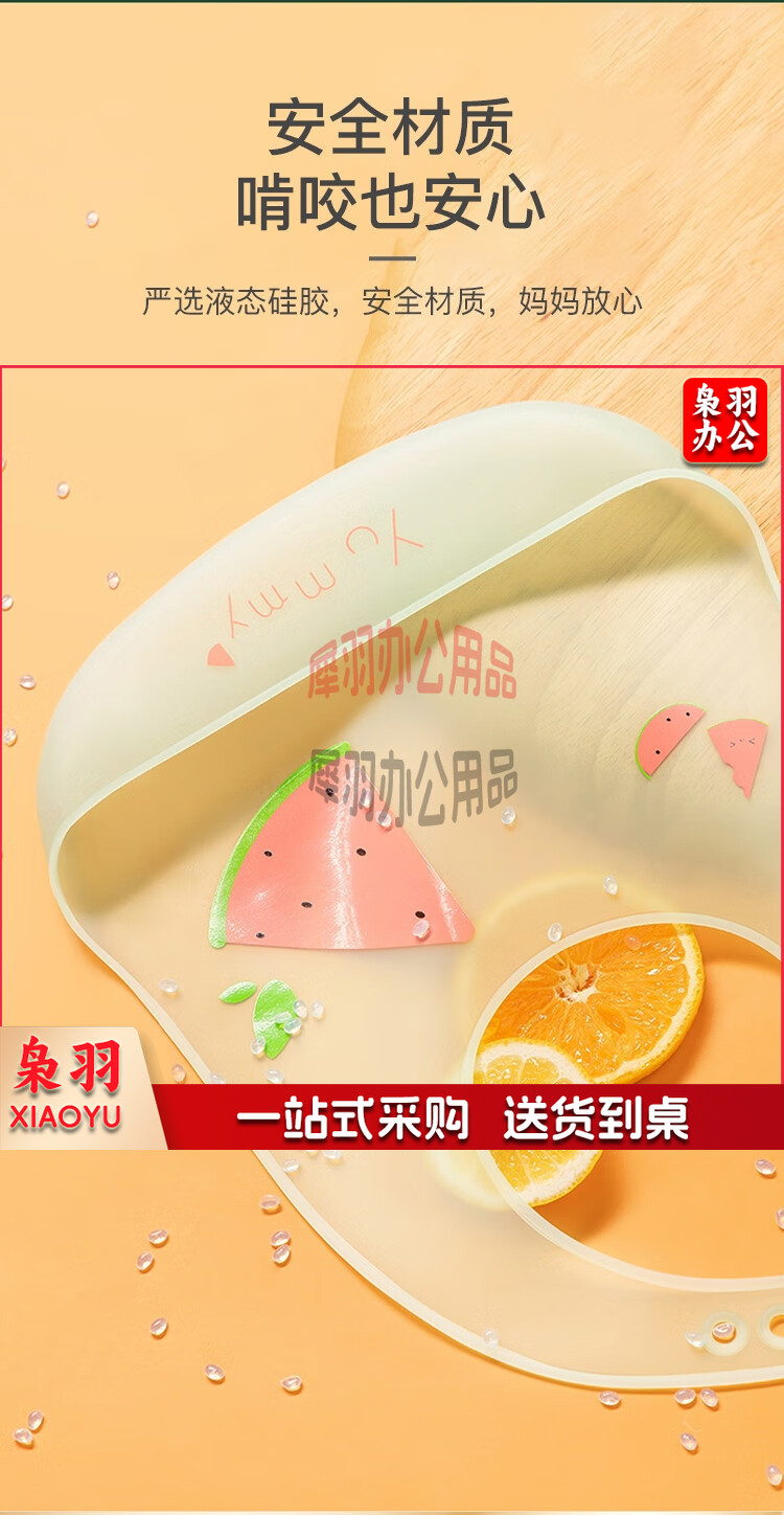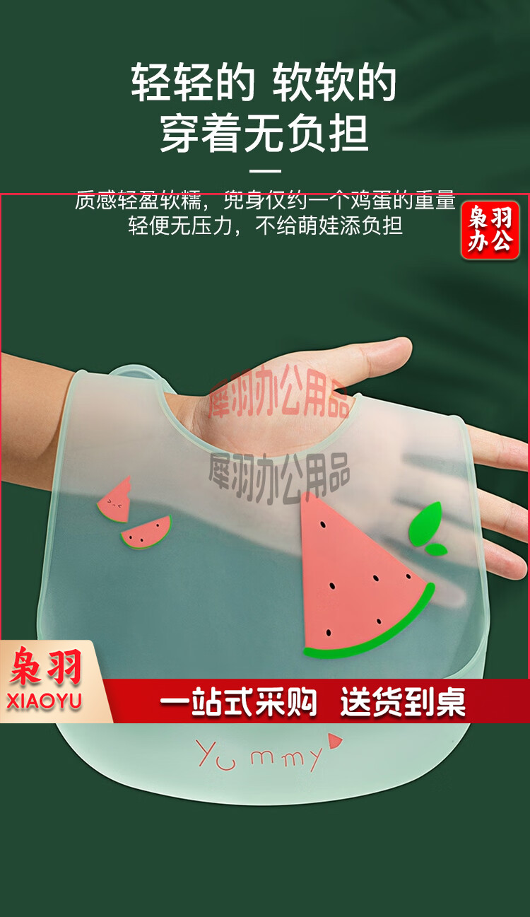 婴儿围兜硅胶吃饭围嘴宝宝饭兜儿童防水罩衣无穿感薄款 西瓜款