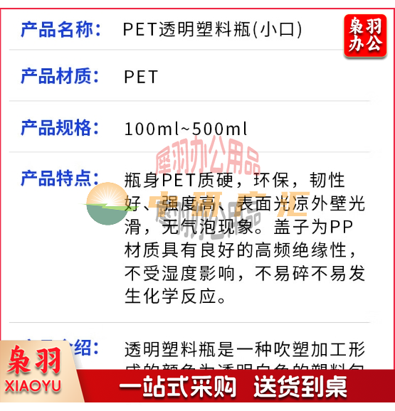 PET塑料透明试剂瓶直身瓶样品瓶留样瓶 透明小口100ml(10个/袋)