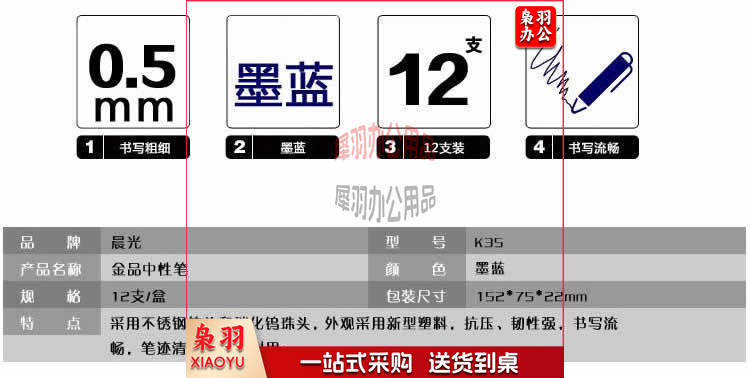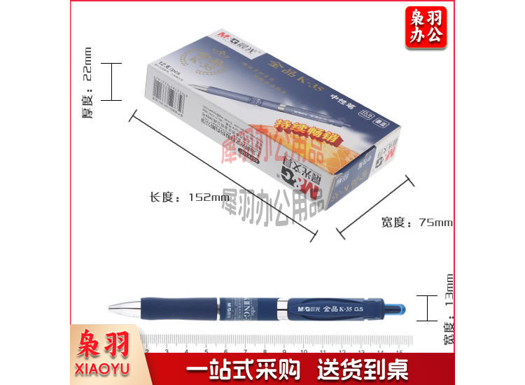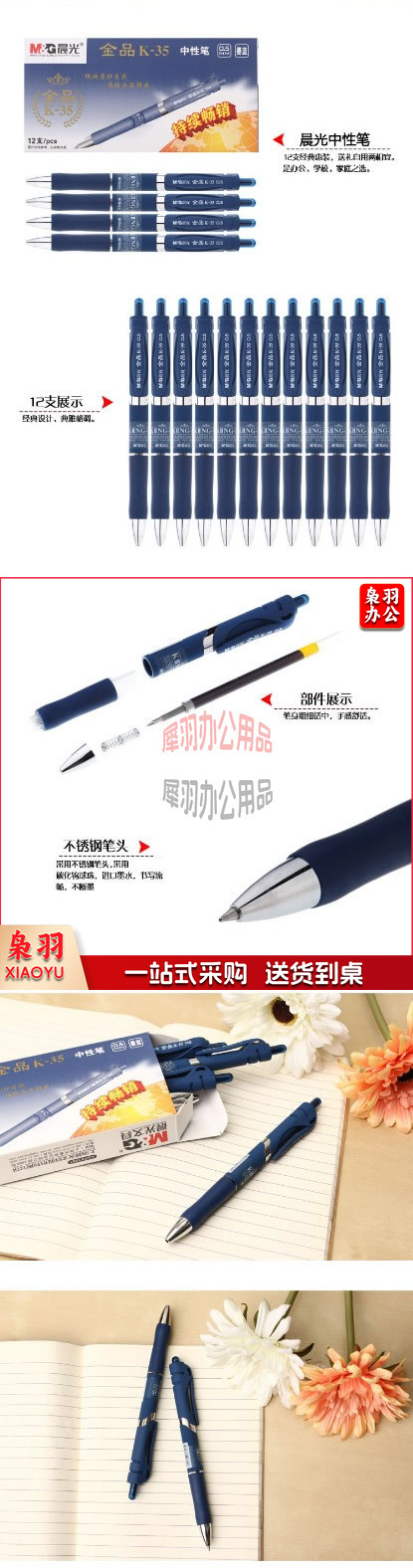 晨光 AGPK3507 按动中性笔 金品K35签字笔0.5mm学生用水性笔 蓝色