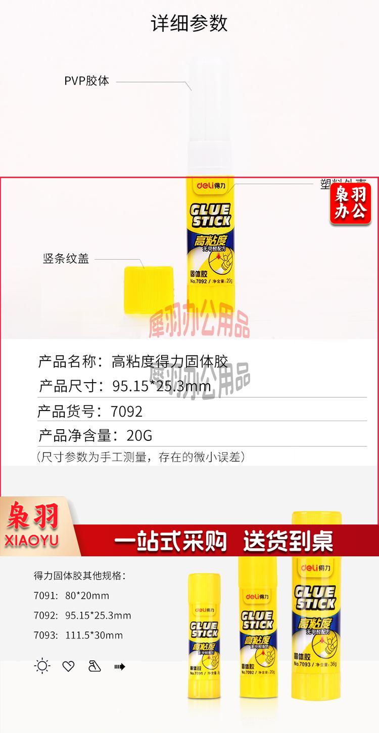 得力(deli)20g高粘度PVP固体胶水 无甲醛快干耐用胶棒 单支装 办公用品 7092