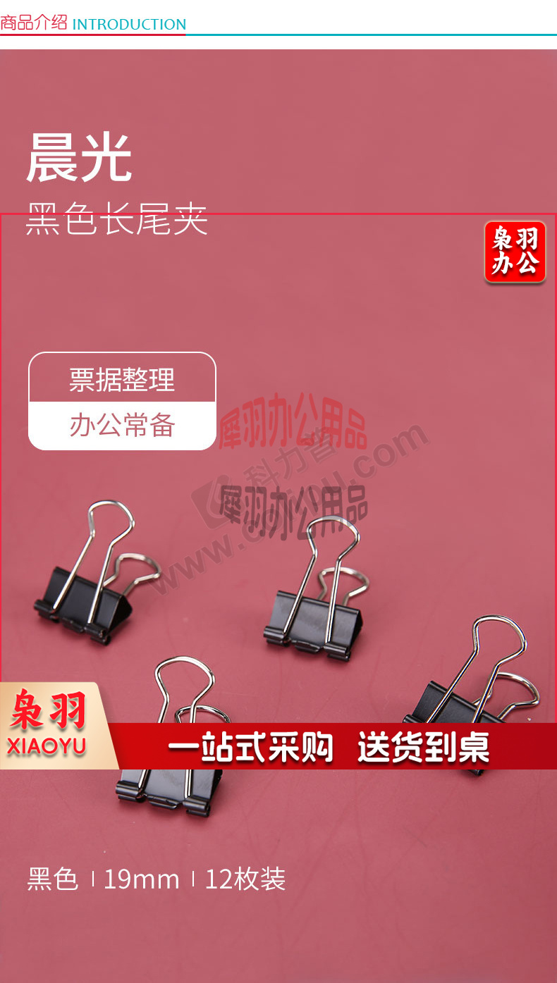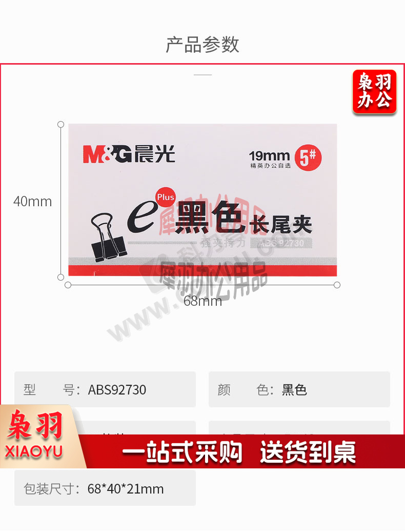 晨光 M&G Eplus盒装黑色长尾夹 ABS92730 5# 19mm 12个/盒 12盒/包 300盒/箱