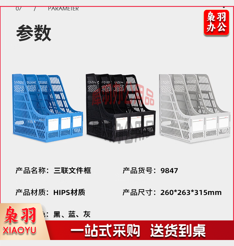 得力9847三联文件框大容量收纳整理资料架标签分类归纳文件架 1个【三联文件框】