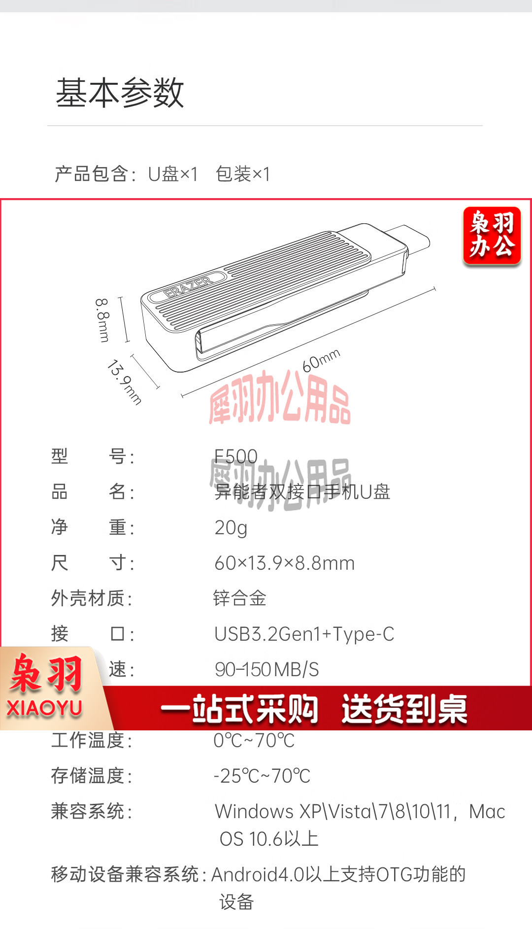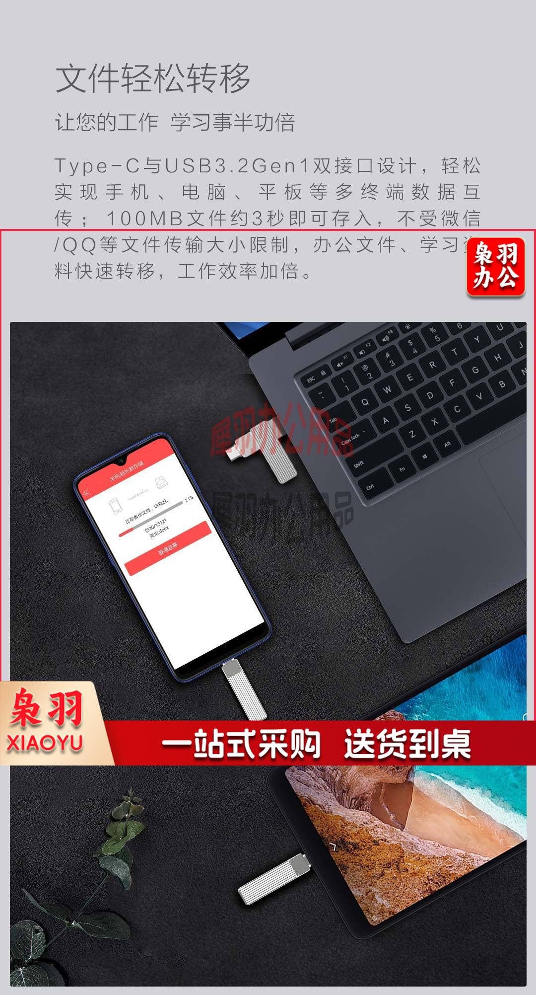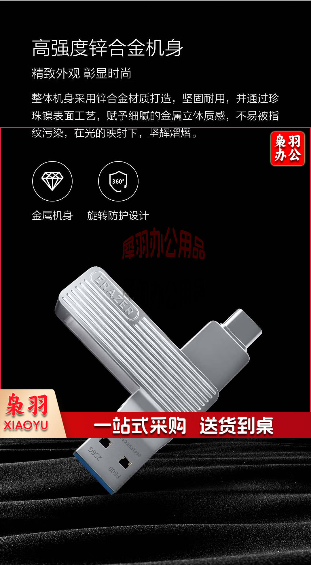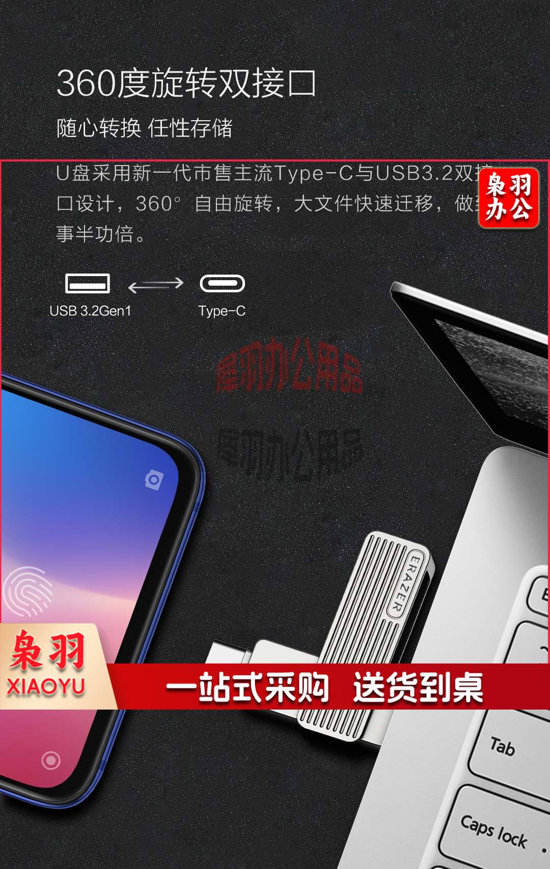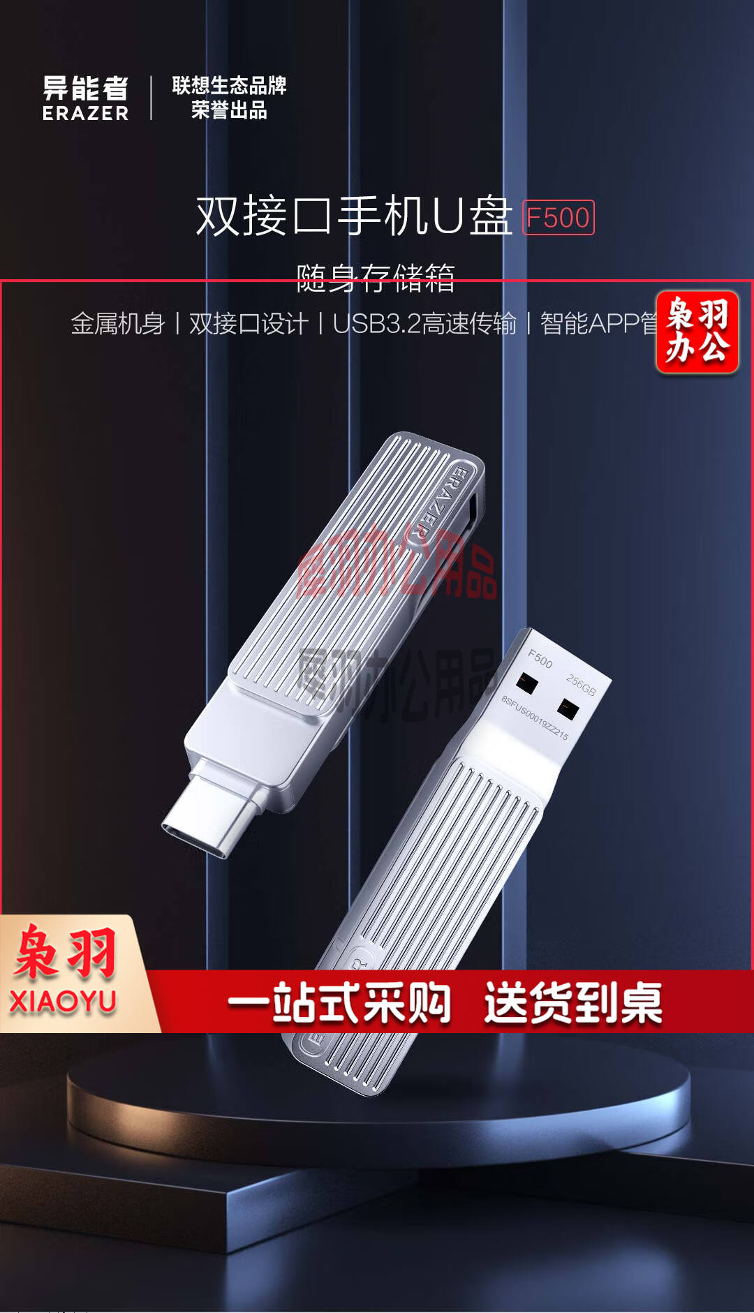 联想(Lenovo)异能者128GB Type-C USB3.2 U盘 F500 银色 双接口