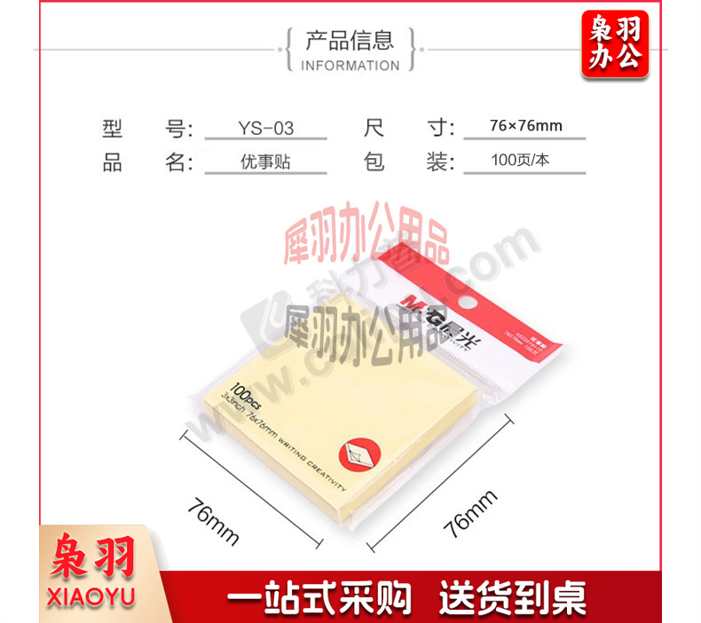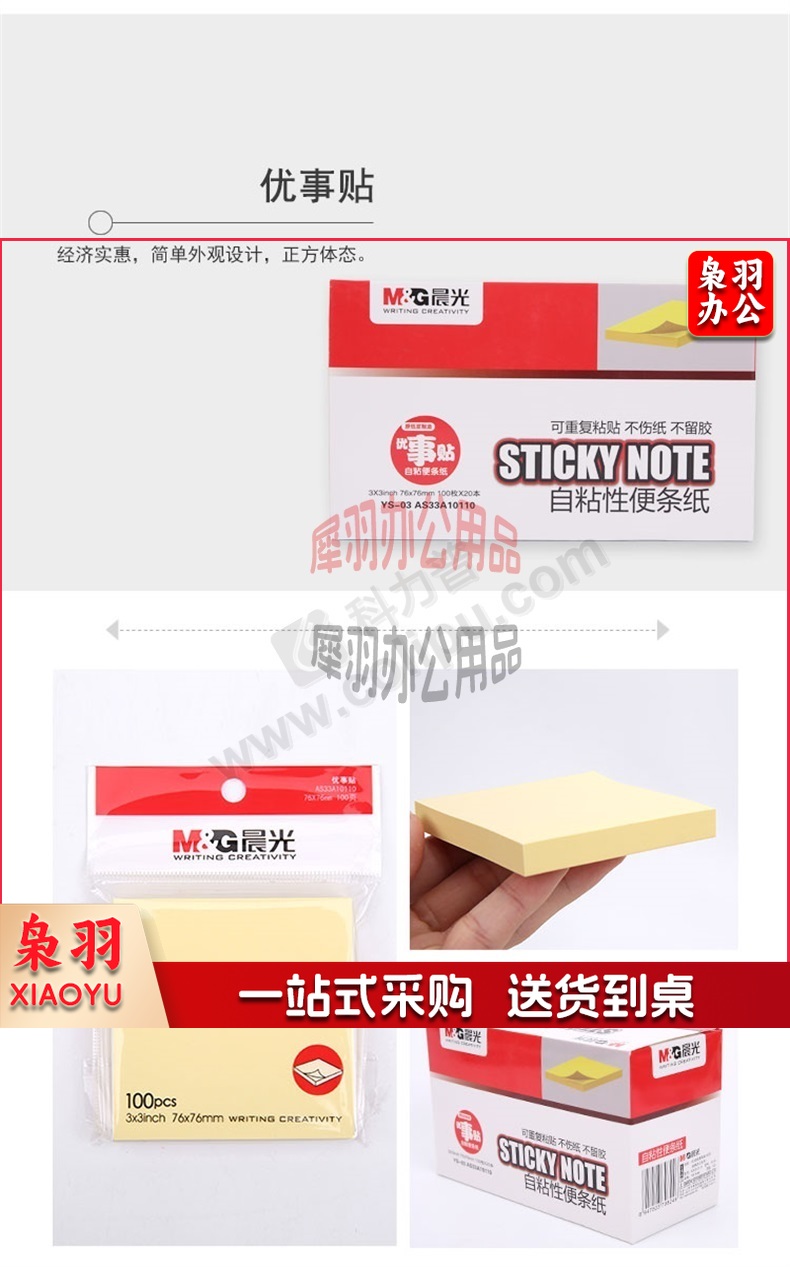 晨光 M&G 优事贴自粘便条纸 YS-03 100页 76*76mm (黄色) 100页/本