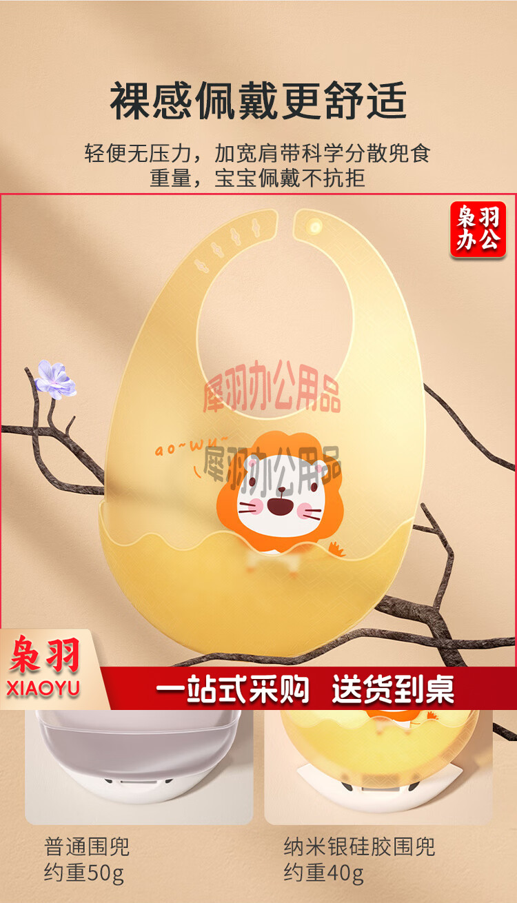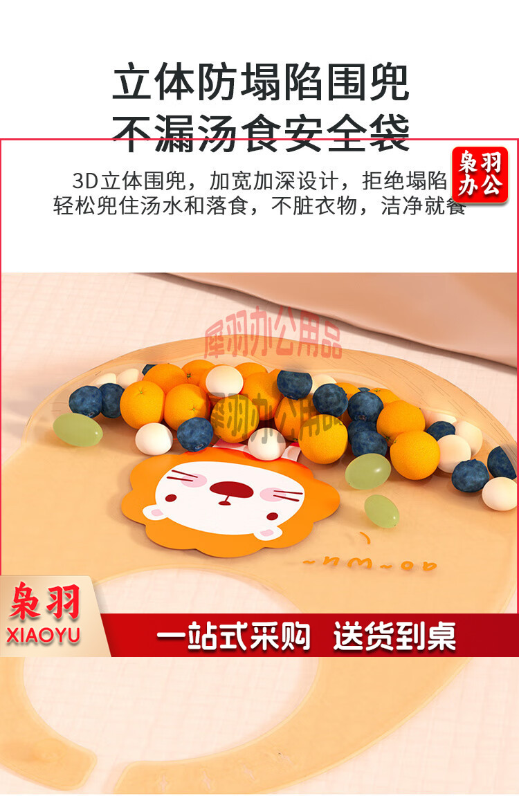 围兜婴儿宝宝吃饭围兜饭兜儿童罩衣围裙3D裸感硅胶围兜 小狮子